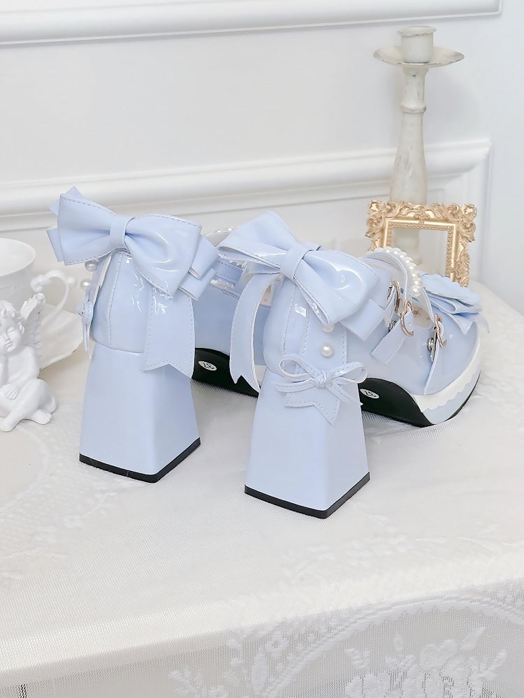 High Style Lolita Details in with Sweet Blue Platform Heels Design Block Bow Crisscross