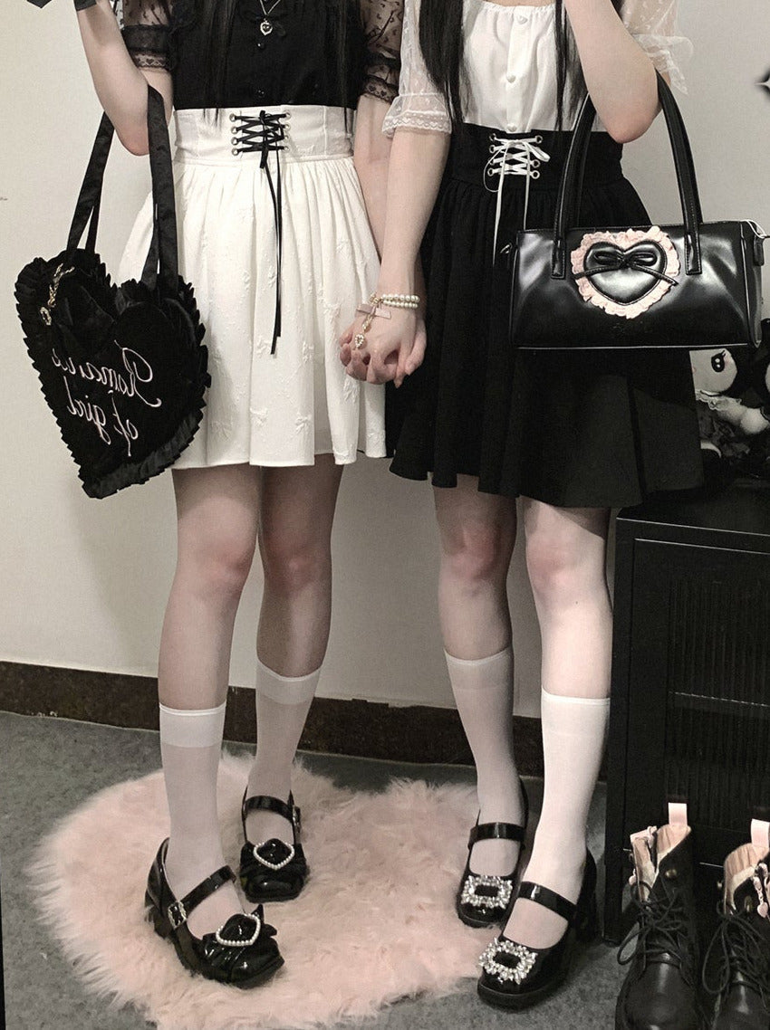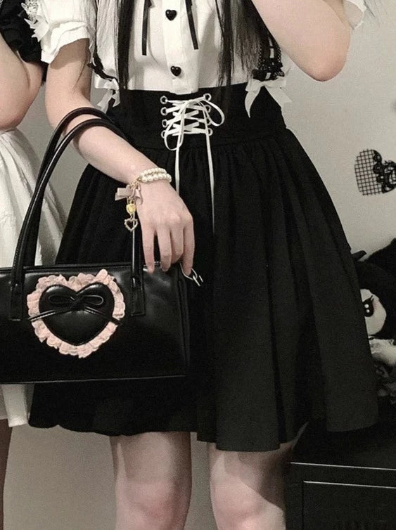 黒と白のオールドスクールロリータファッションドレス蝶結びロリータJSKセット