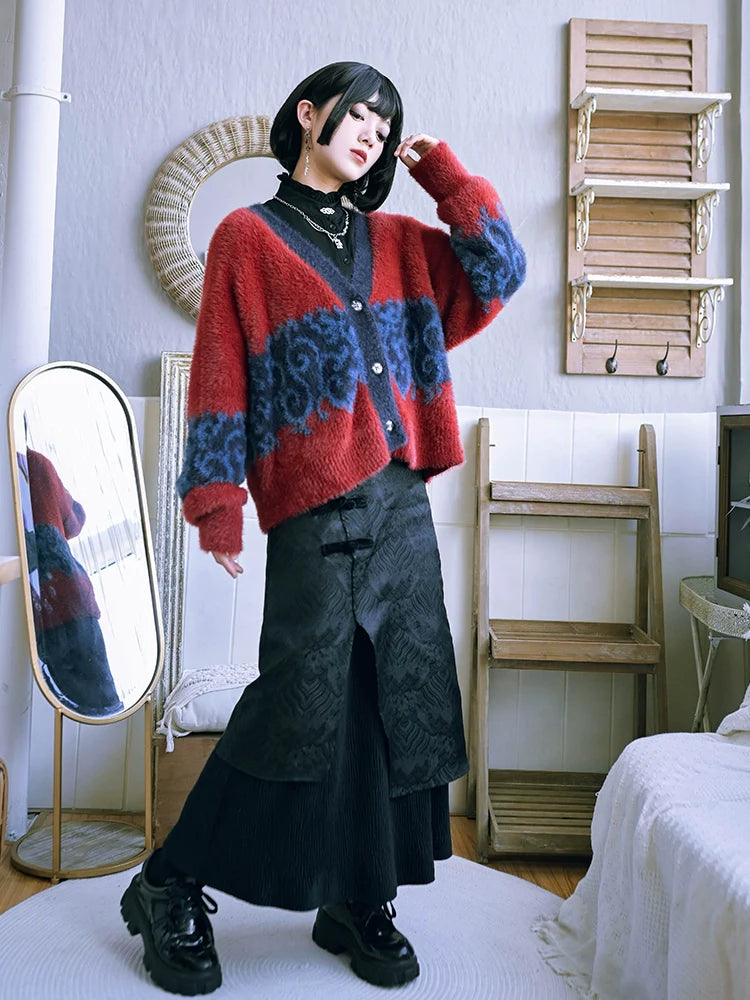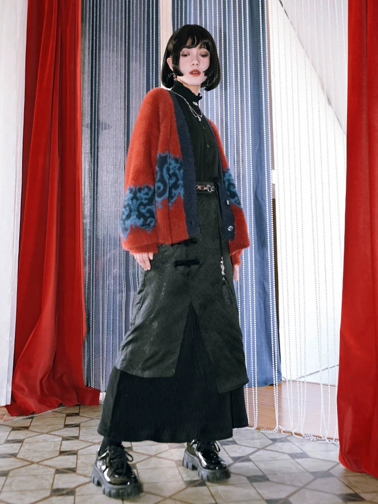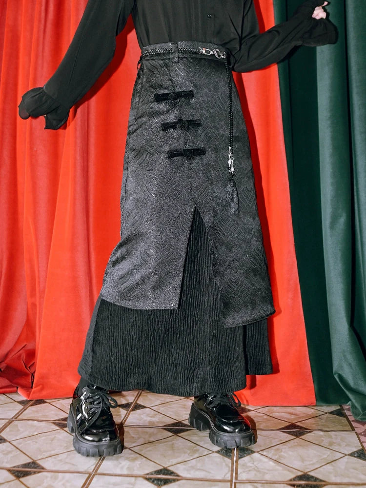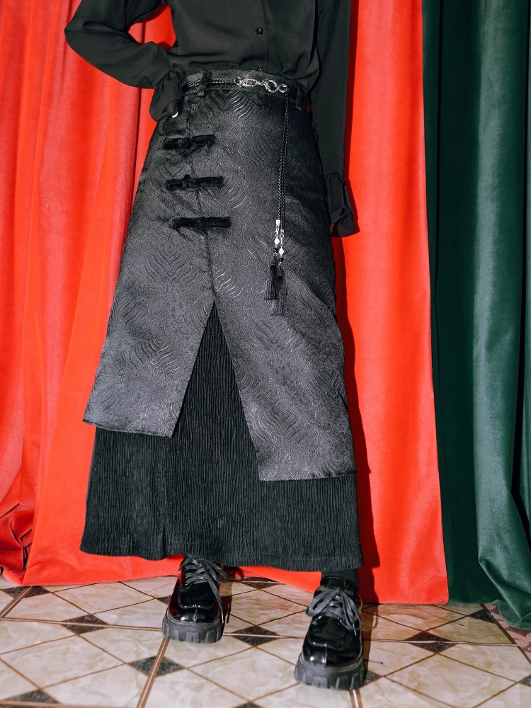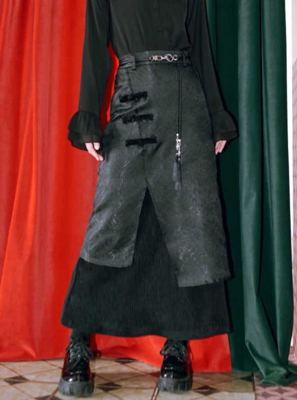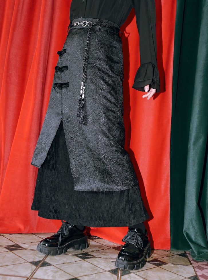 ヒップなジャカードチャイナレトロドラゴンカバーレイヤードスカート