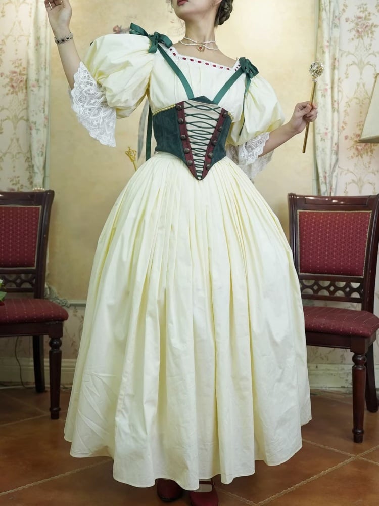 歴史的衣装 ライトイエロー ボーン入り ボディス トップセット