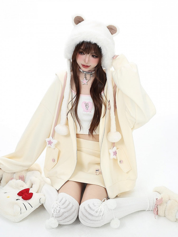 Hooded Jacket Letter Yellow Chest Embroidery Drawstrings Charm Star with
