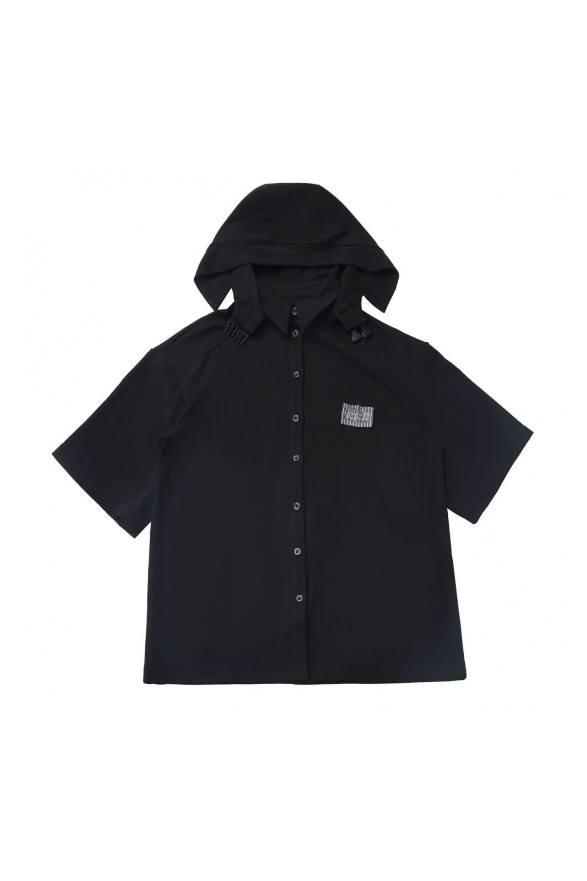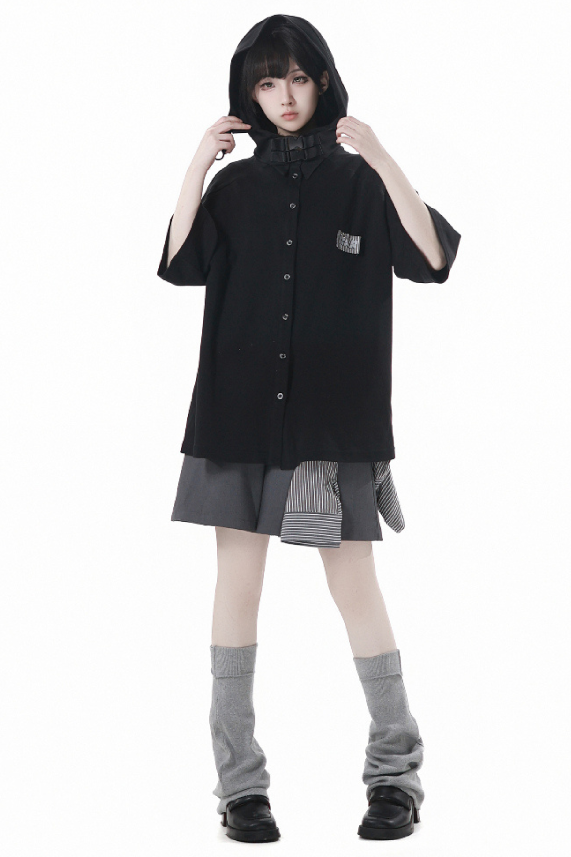 ❤モードベストフードジャケット+ノースリーブトップス+ハーフパンツ❤