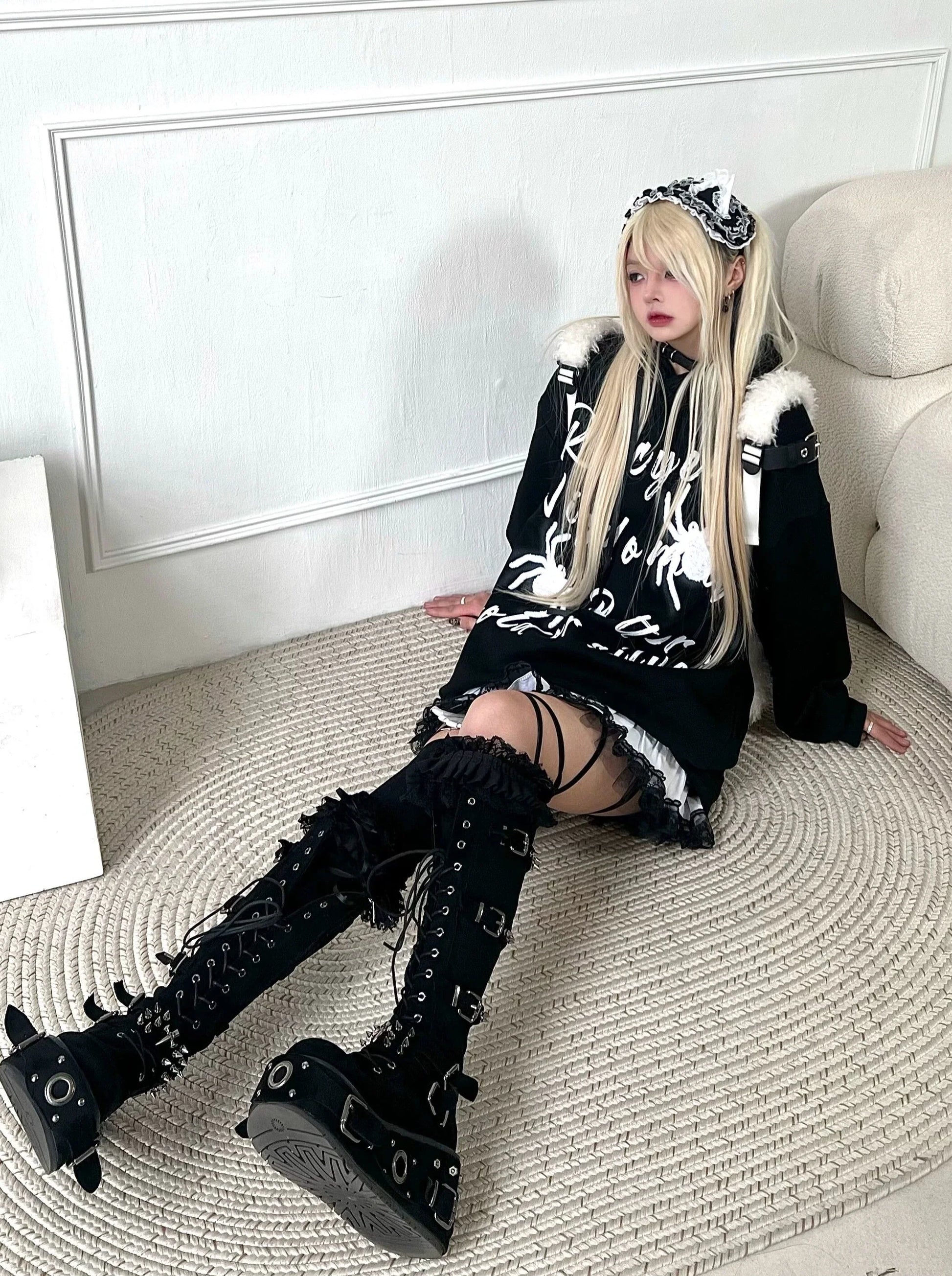 ダークなスパイダープリントと文字のディテールが特徴の、愛らしいパーカー。スタイリッシュな学生にぴったりです。このユニークなアイテムで、暖かくスタイリッシュに過ごしながら、かわいいものへの愛を表現しましょう。