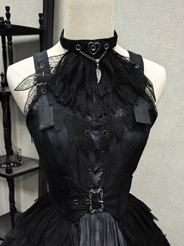 黒と白のオールドスクールロリータファッションドレス蝶結びロリータJSKセット