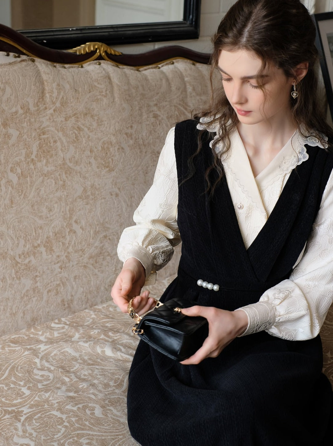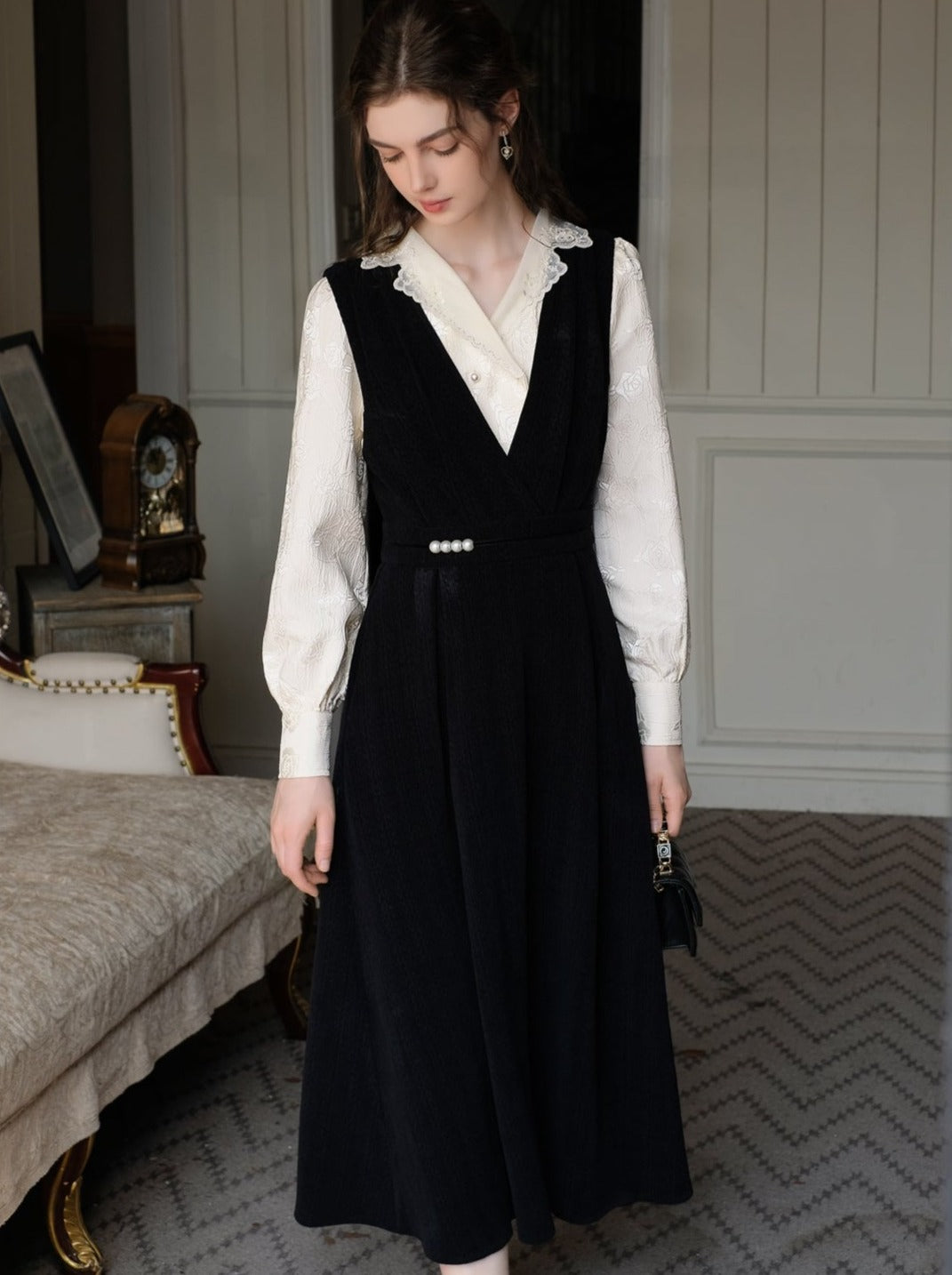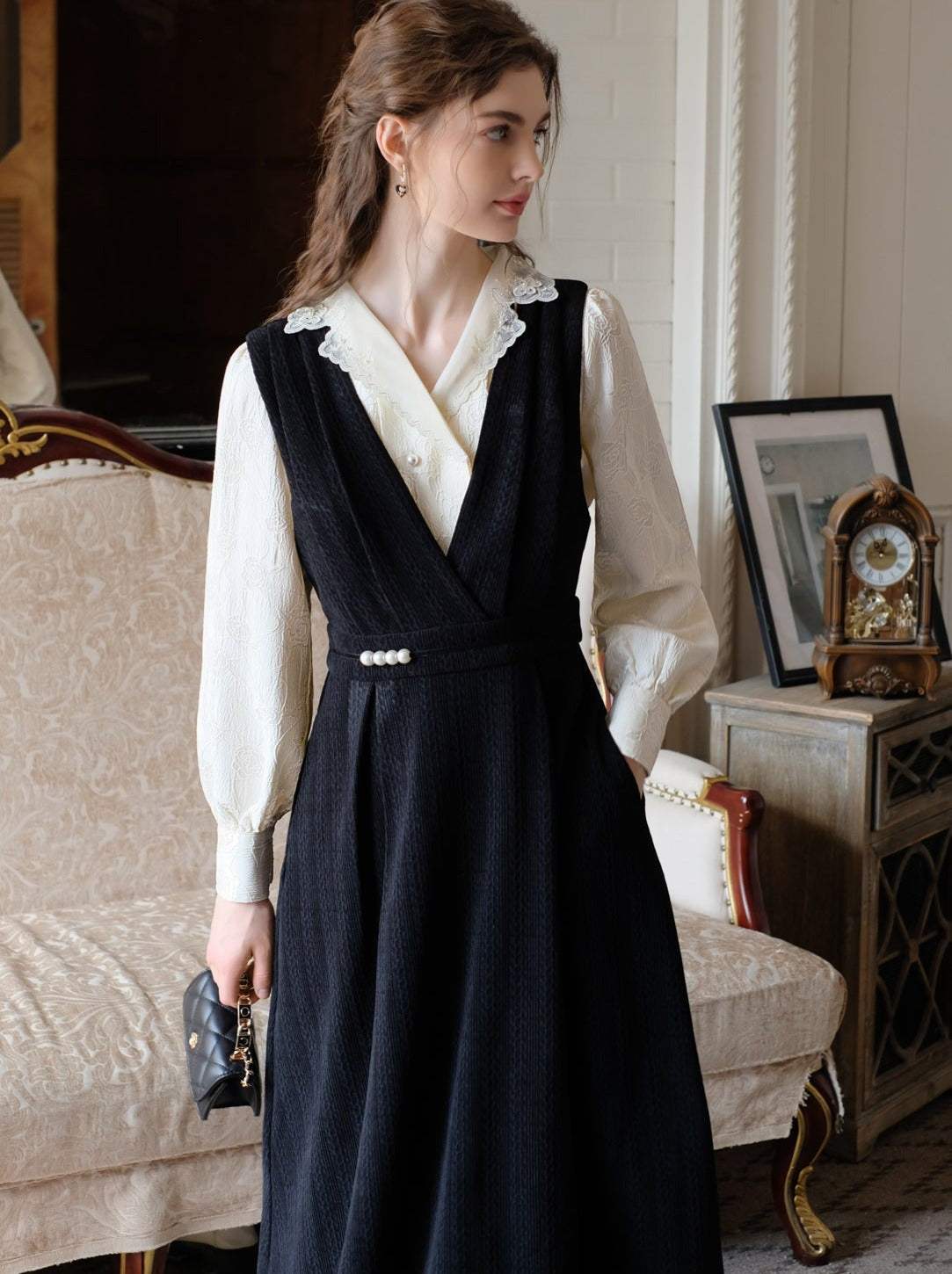 黒と白のオールドスクールロリータファッションドレス蝶結びロリータJSKセット
