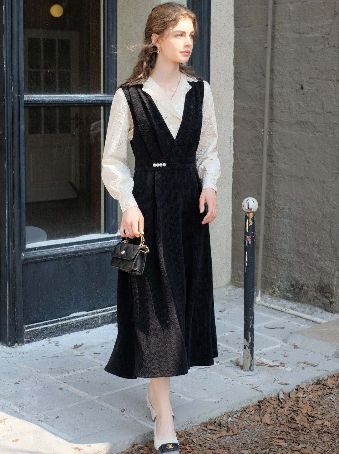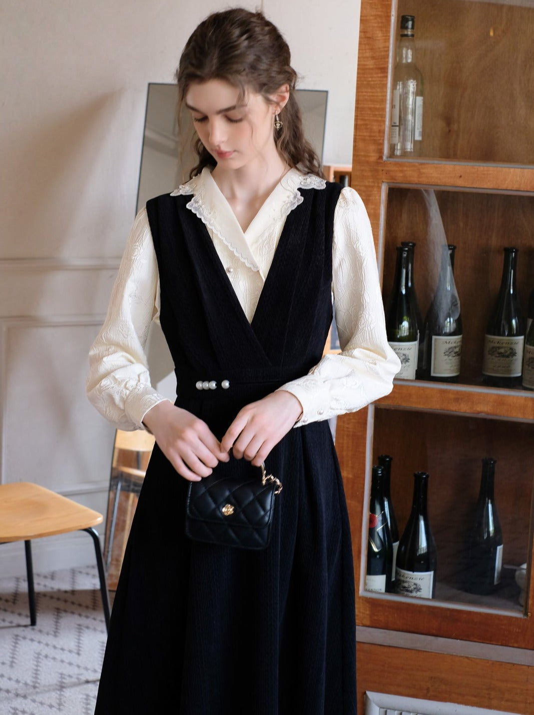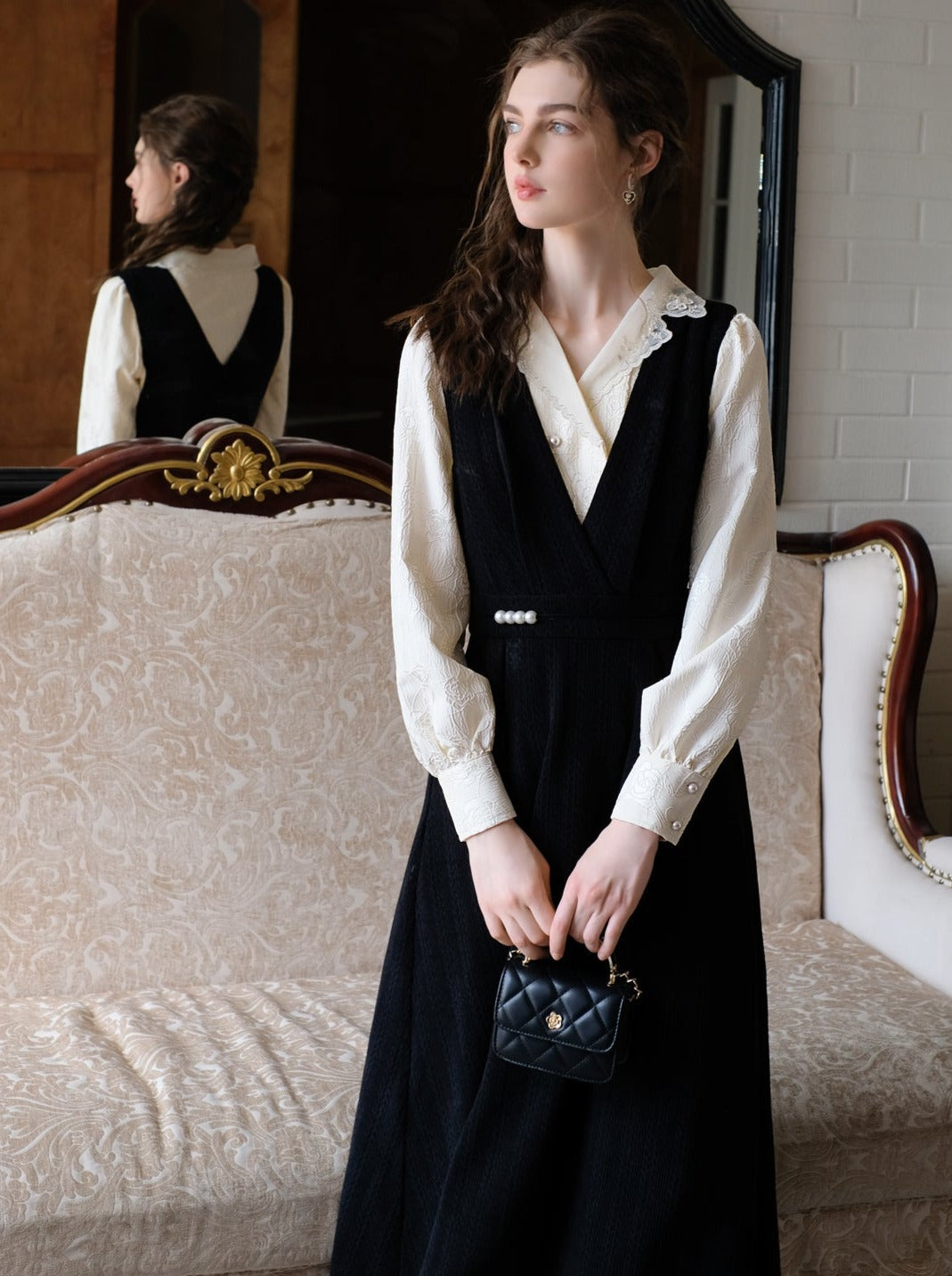 黒と白のオールドスクールロリータファッションドレス蝶結びロリータJSKセット