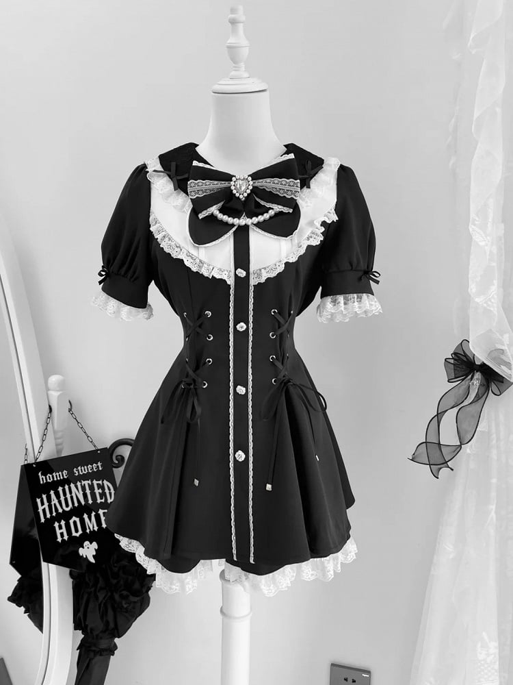 黒と白のオールドスクールロリータファッションドレス蝶結びロリータJSKセット