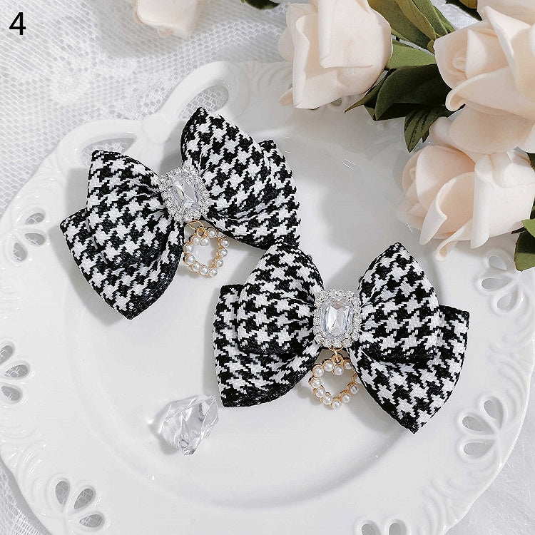 ジライケイ ビーズ付き スイートハート ラインストーン チェック柄 蝶結び ヘアクリップ