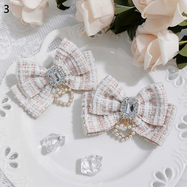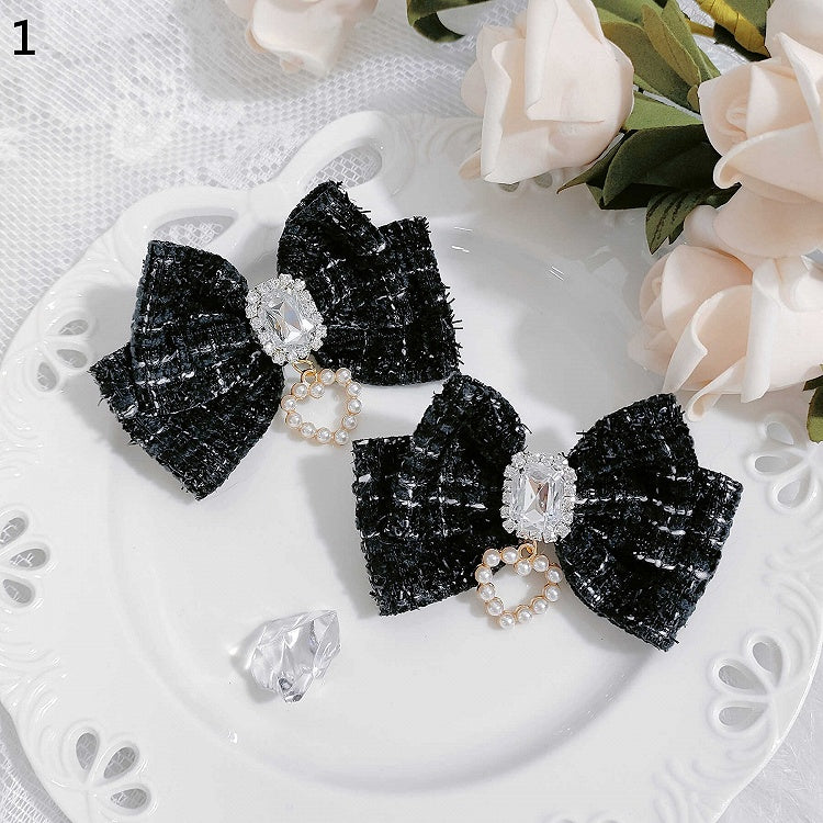 ジライケイ ビーズ スイートハート ラインストーン チェック柄 蝶結び ヘアクリップ