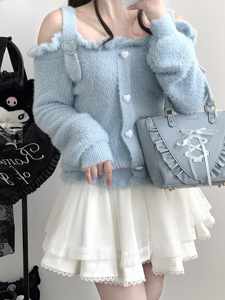 ジライケイ ブルー オフショルダー ネックライン ランドマインスタイル セーター