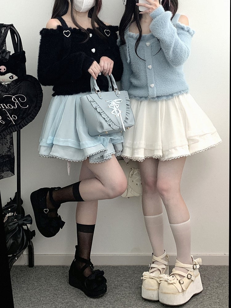 青と白のオールドスクールロリータファッションドレス 蝶結びディテール JSK セット