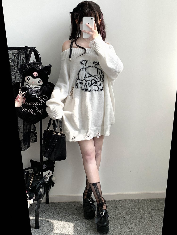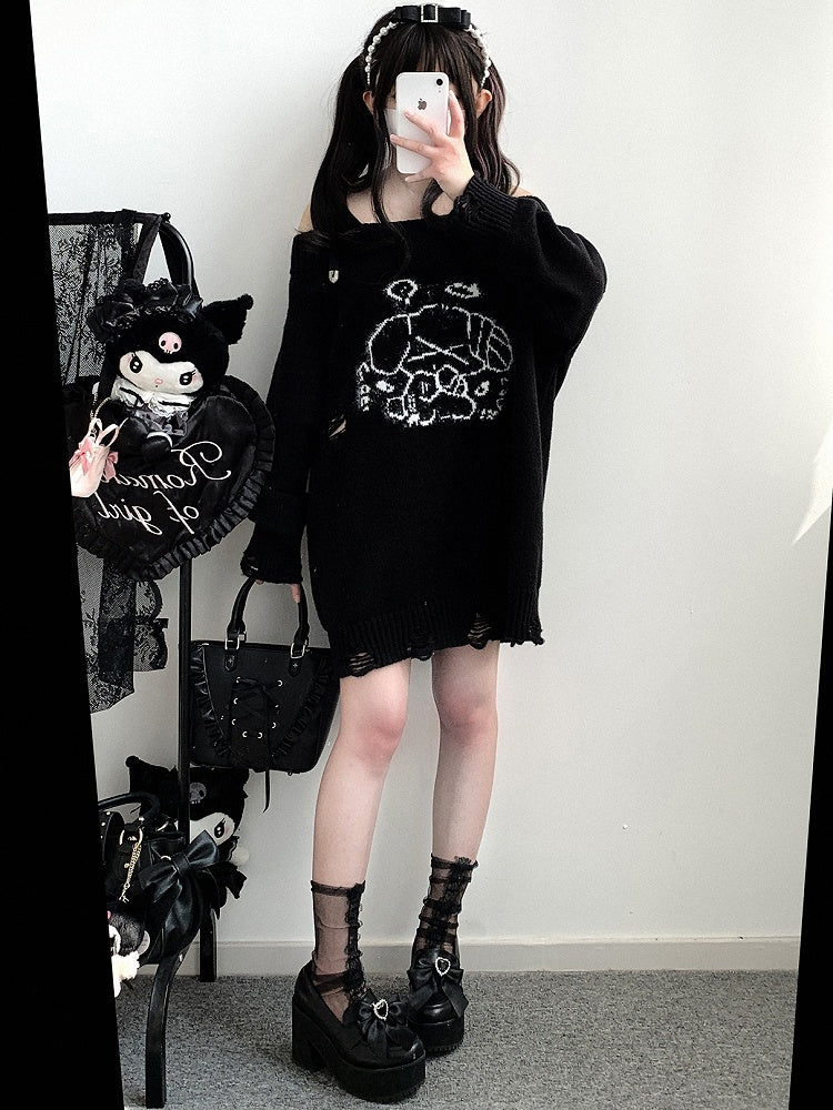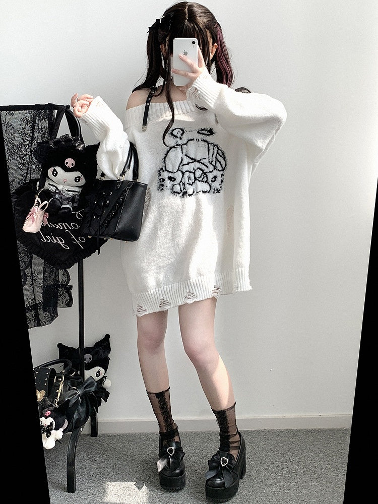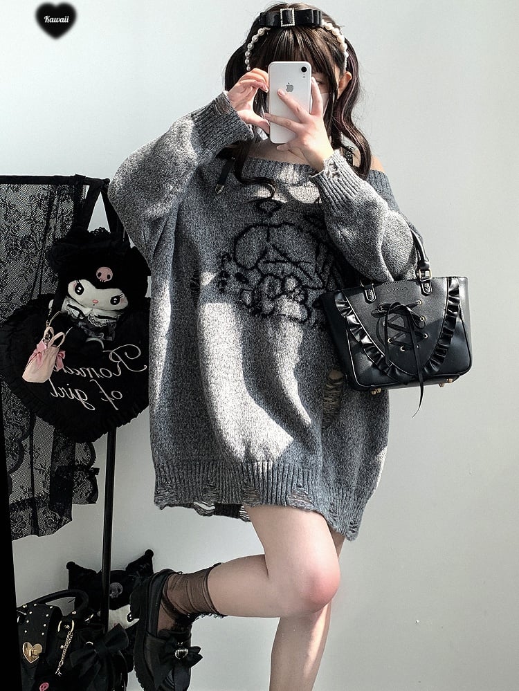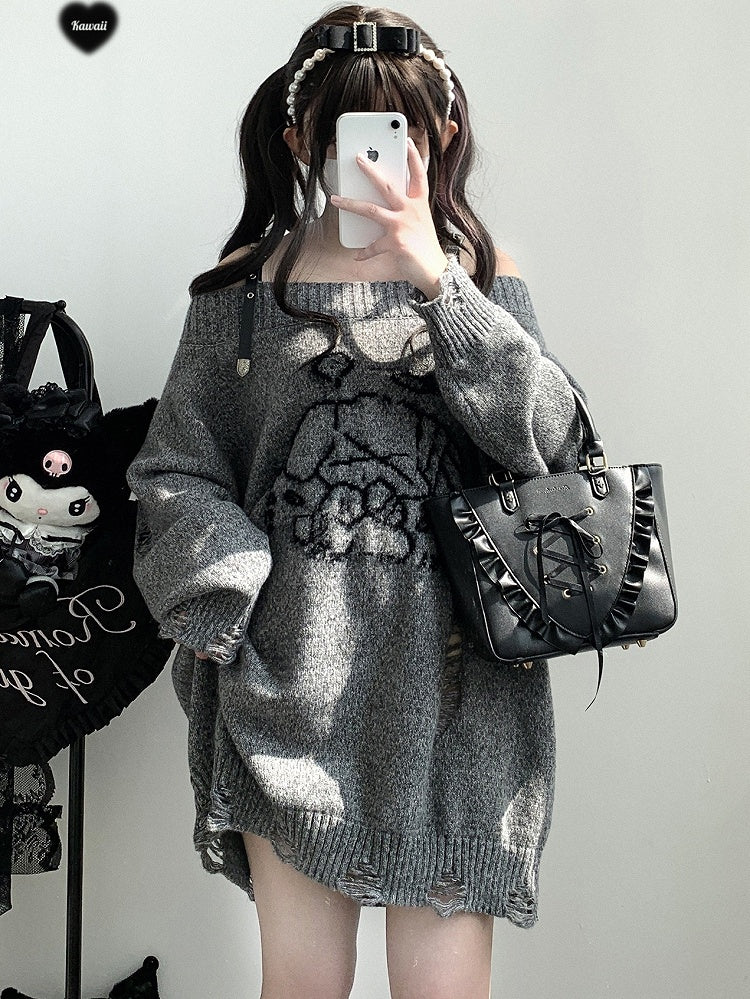 この愛らしいJirai Kei Grey Angel Puppy Graphic Distressed Holes Landmine Loose Sweaterは、可愛らしさとスタイルが完璧に融合したアイテムです。ダメージ加工の穴がエッジの効いたアクセントとなり、ゆったりとしたフィット感が快適さと着回し力を高めます。このユニークでチャーミングなセーターで、子犬への愛情を表現しましょう。