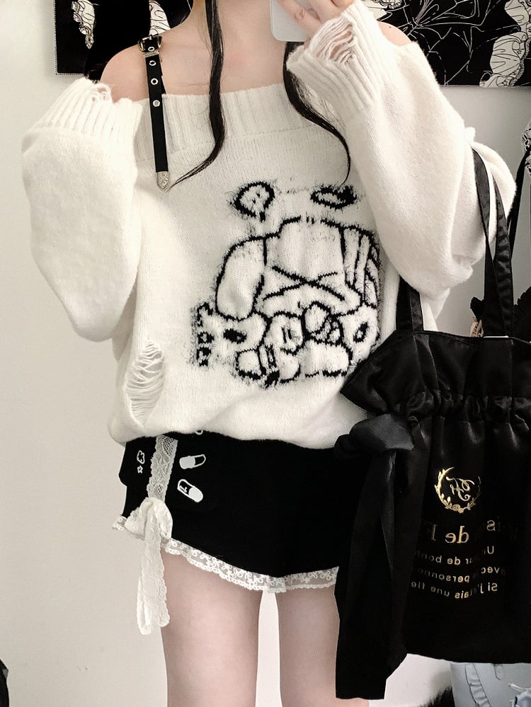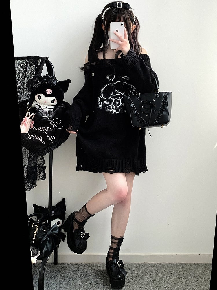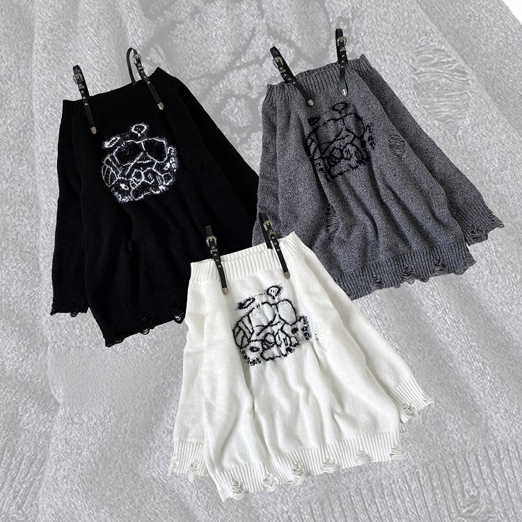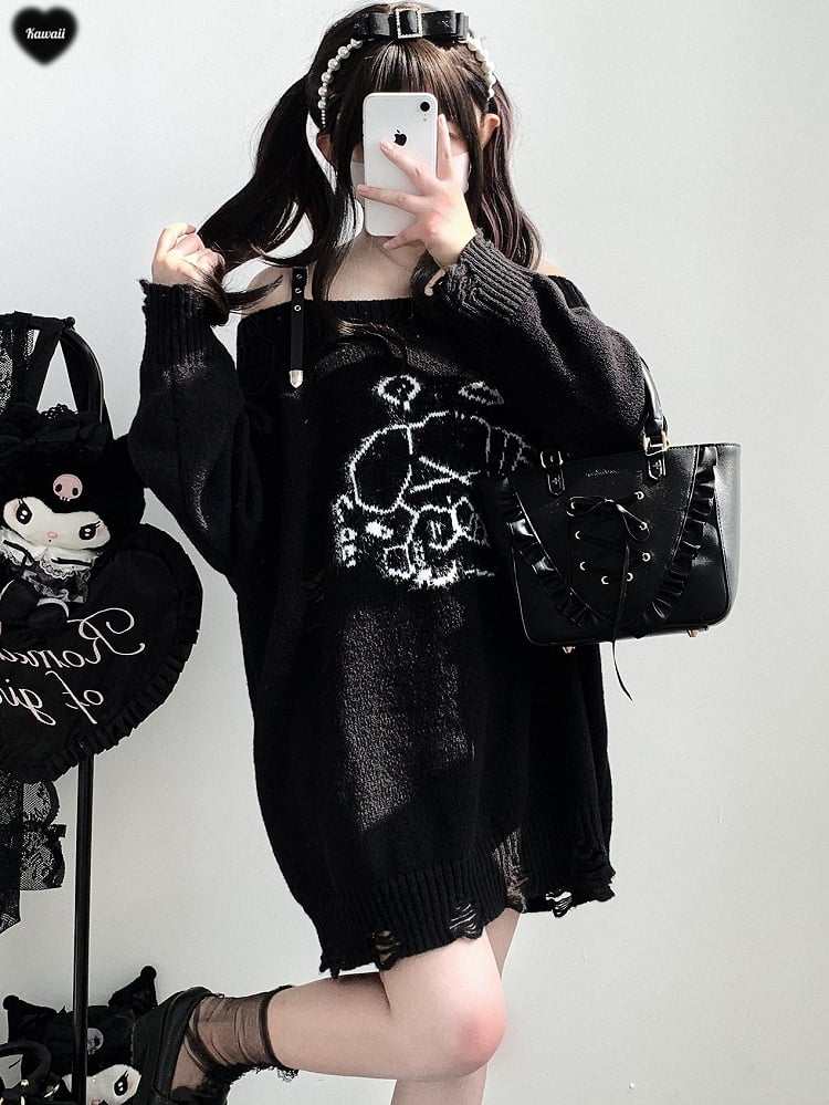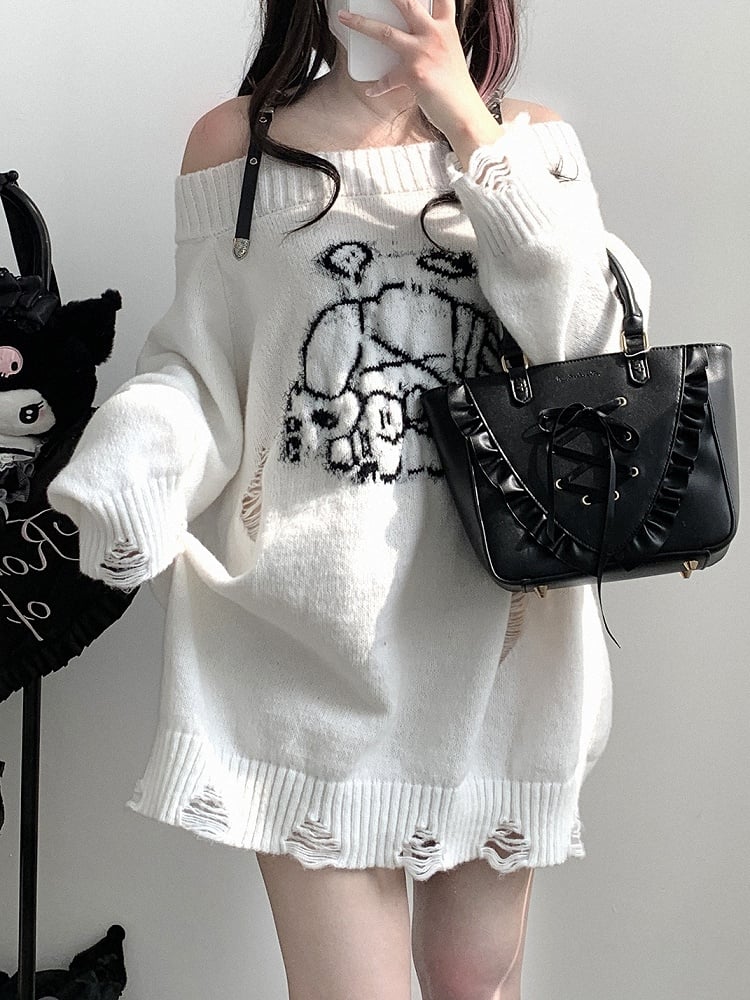 この愛らしいJirai Kei Grey Angel Puppy Graphic Distressed Holes Landmine Loose Sweaterは、可愛らしさとスタイルが完璧に融合したアイテムです。ダメージ加工の穴がエッジの効いたアクセントとなり、ゆったりとしたフィット感が快適さと着回し力を高めます。このユニークでチャーミングなセーターで、子犬への愛情を表現しましょう。