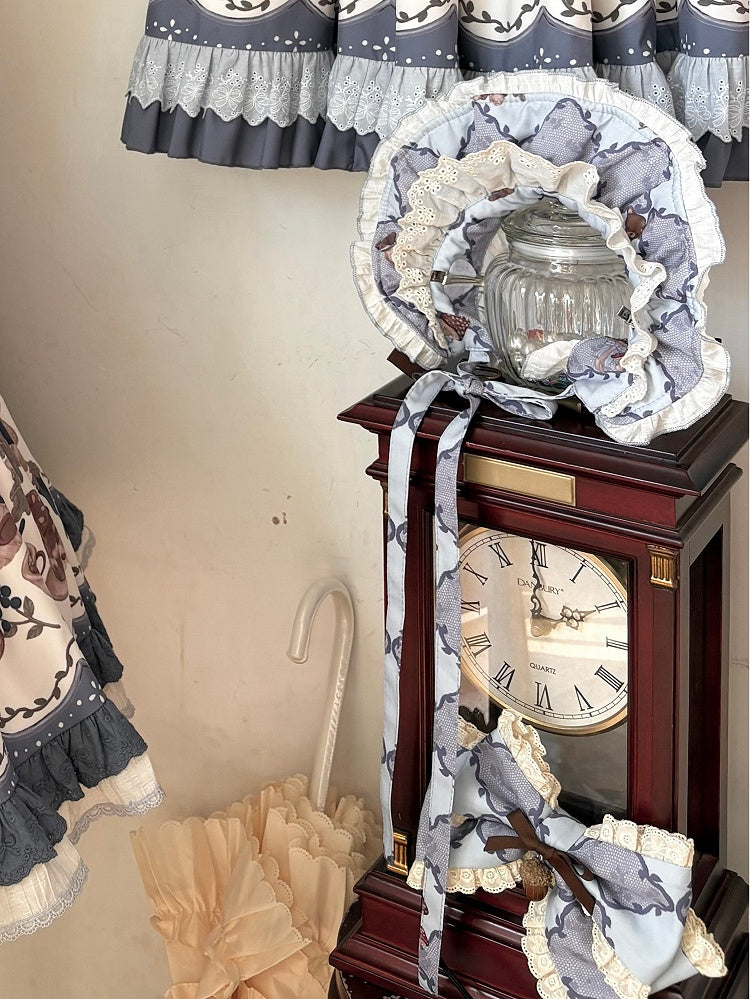 青と白のオールドスクールロリータファッションドレス 蝶結びディテール JSK セット