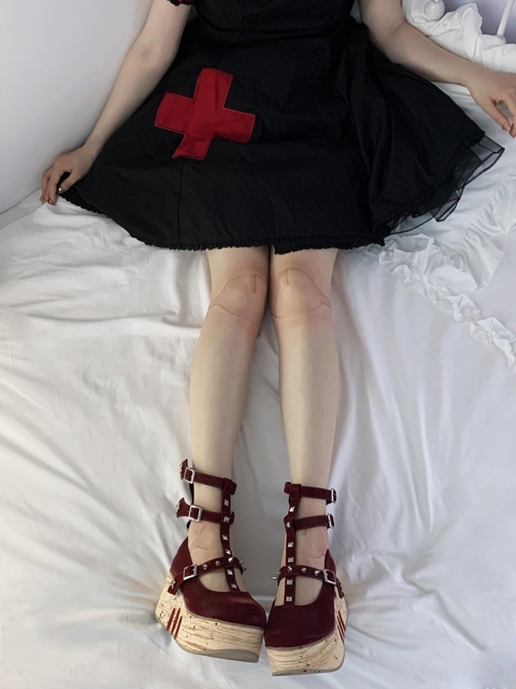 黒と白のオールドスクールロリータファッションドレス蝶結びロリータJSKセット