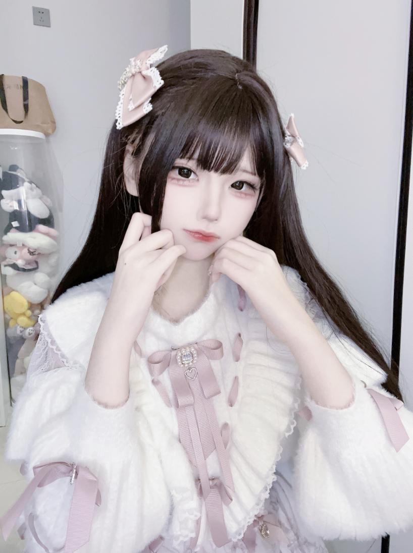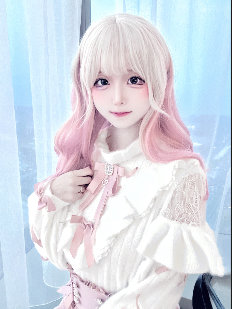 ホワイトとピンクのロリータボンネットチョーカー