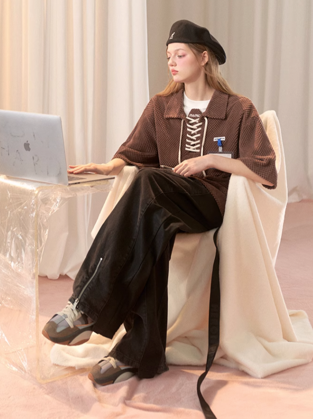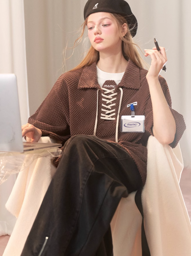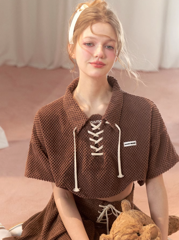 このキュートなセットアップで、周りの視線を釘付けにしましょう!レースアップのショート丈トップスとフレアスカートが、軽やかでフェミニンな雰囲気を演出。ポロTシャツに重ねたレースアップが、遊び心をプラス。着心地を犠牲にすることなく、キュートでスタイリッシュなスタイルを演出したい方にぴったりです。