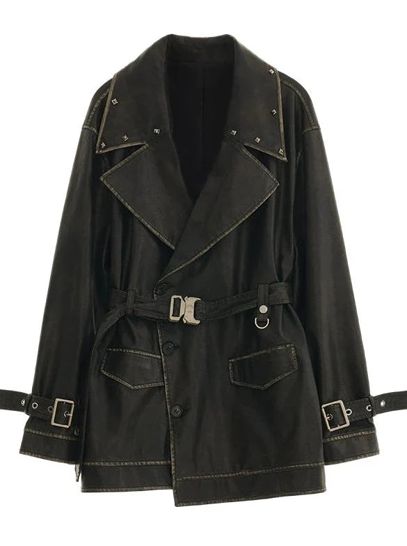 スタイリッシュなストラップウエストと洗練されたデザインが魅力のこの魅力的なレザージャケットは、ワードローブに甘さとエレガンスを添えてくれます。このウィンドブレーカーで暖かく、ファッショナブルに過ごしましょう。