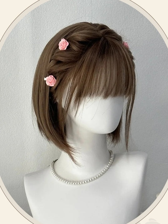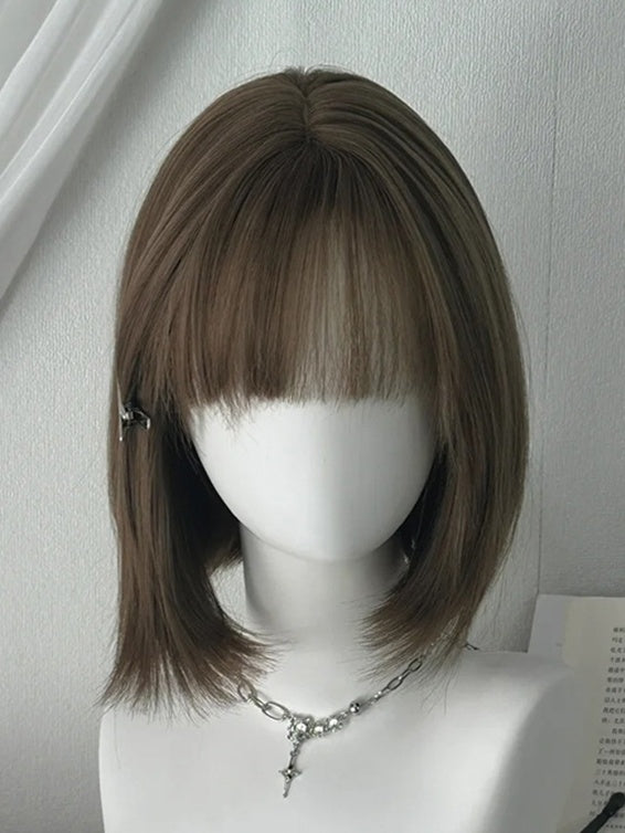 ライトブラウンのショートストレート合成ウィッグ(前髪付き)