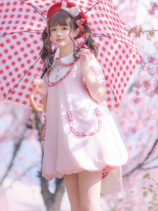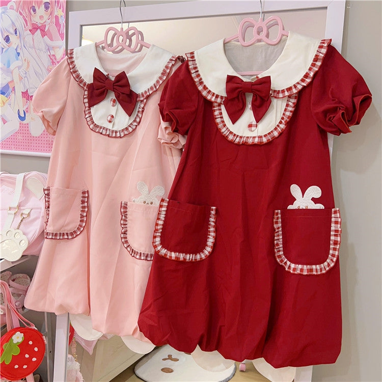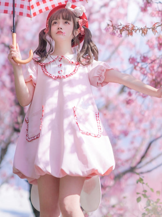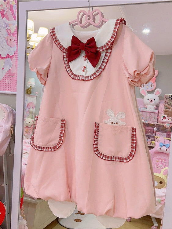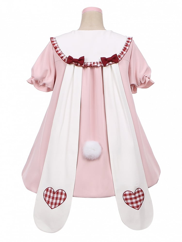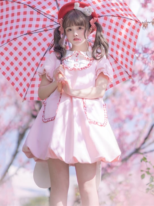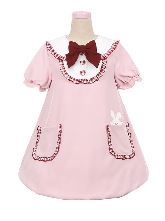 ライトピンクのウサギ耳ピーターパンカラーバブルスカートドレス
