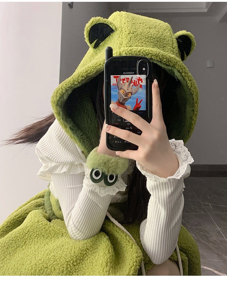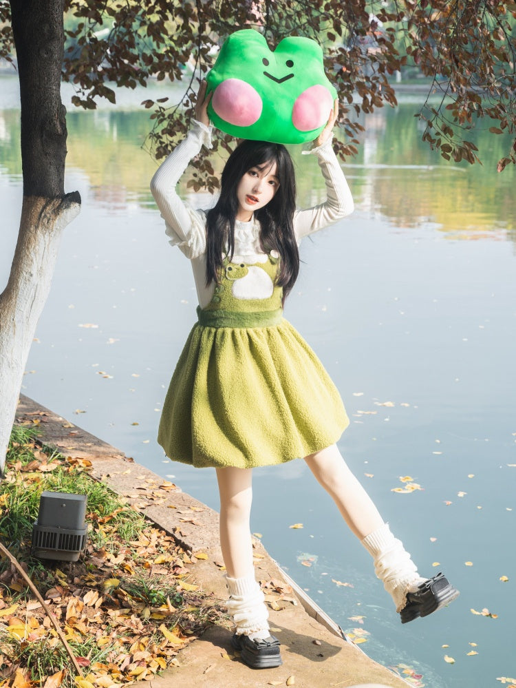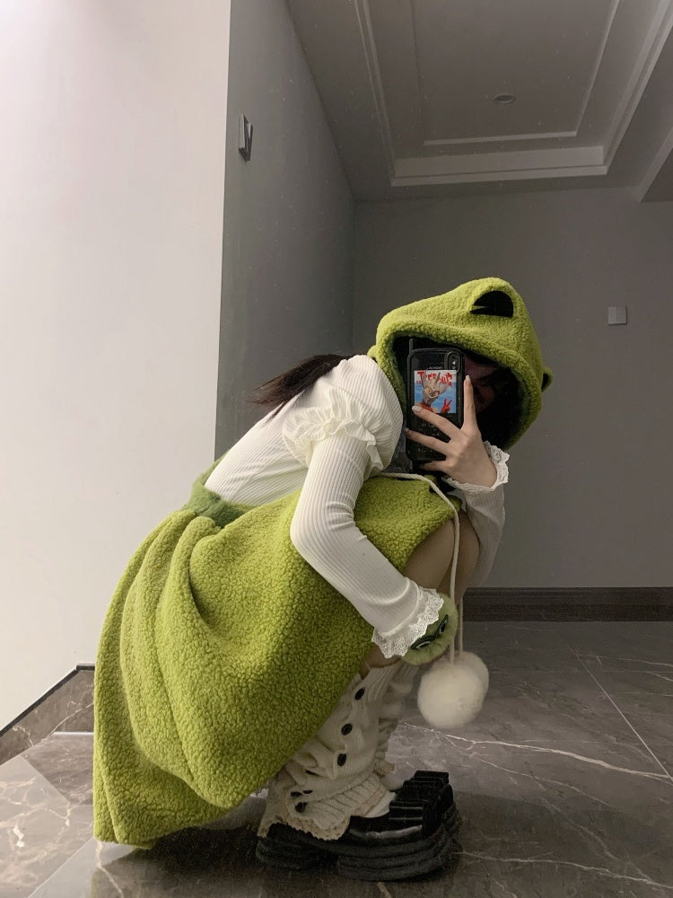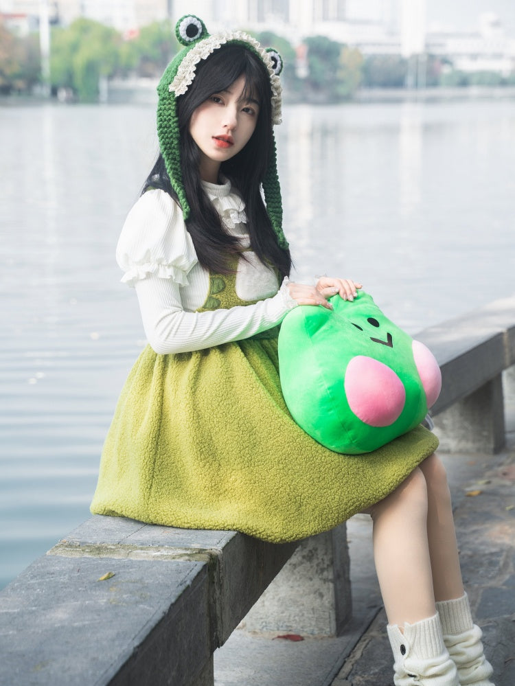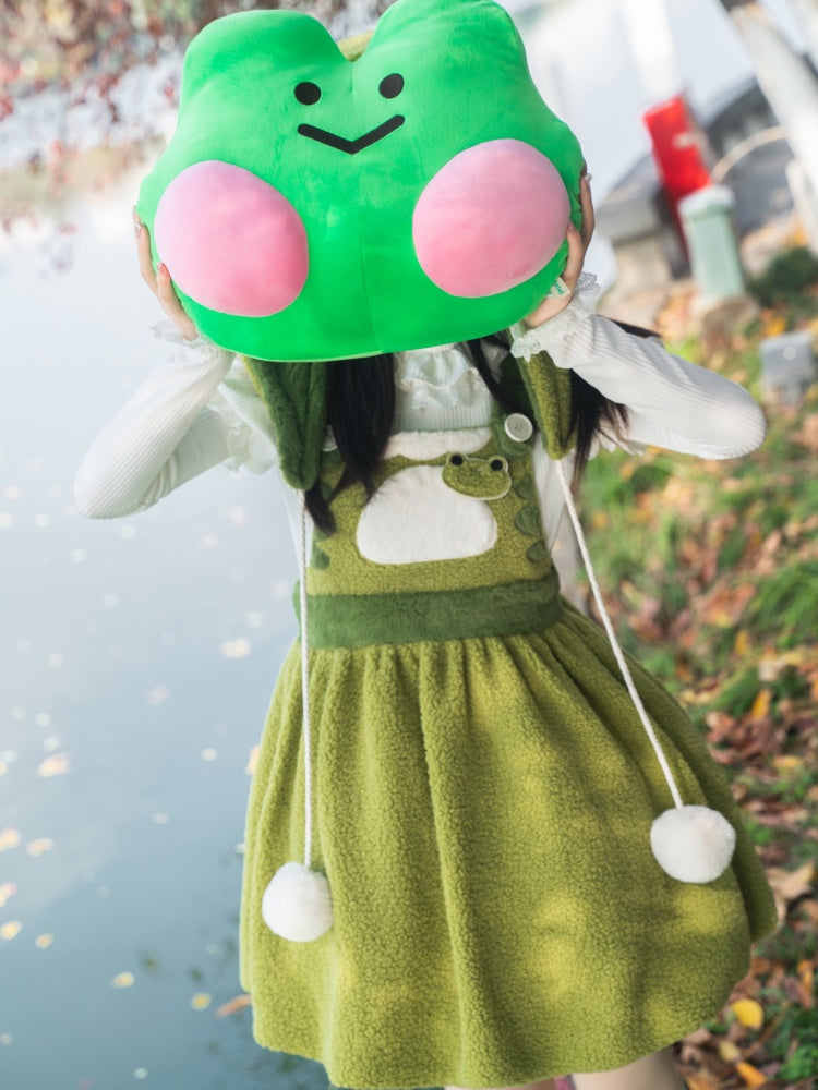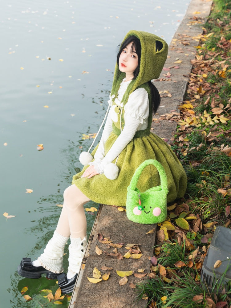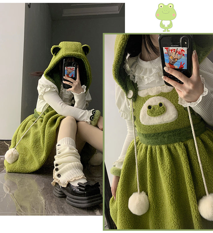 リトルフロッグ グリーン バブルスカート フリース 冬用オーバーオールドレス
