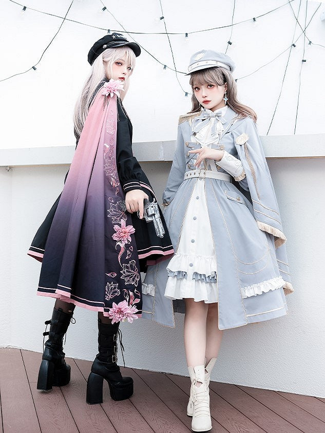 Lolita Details Blue Fringe Military Cape Shoulder One Golden with Trim