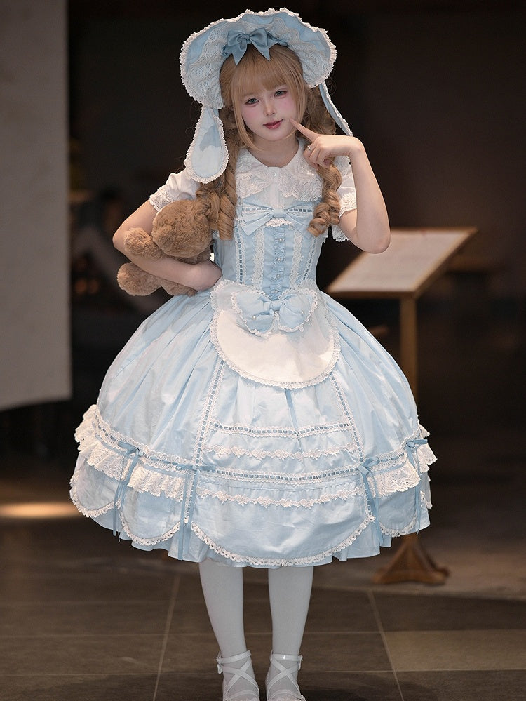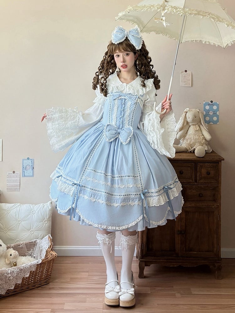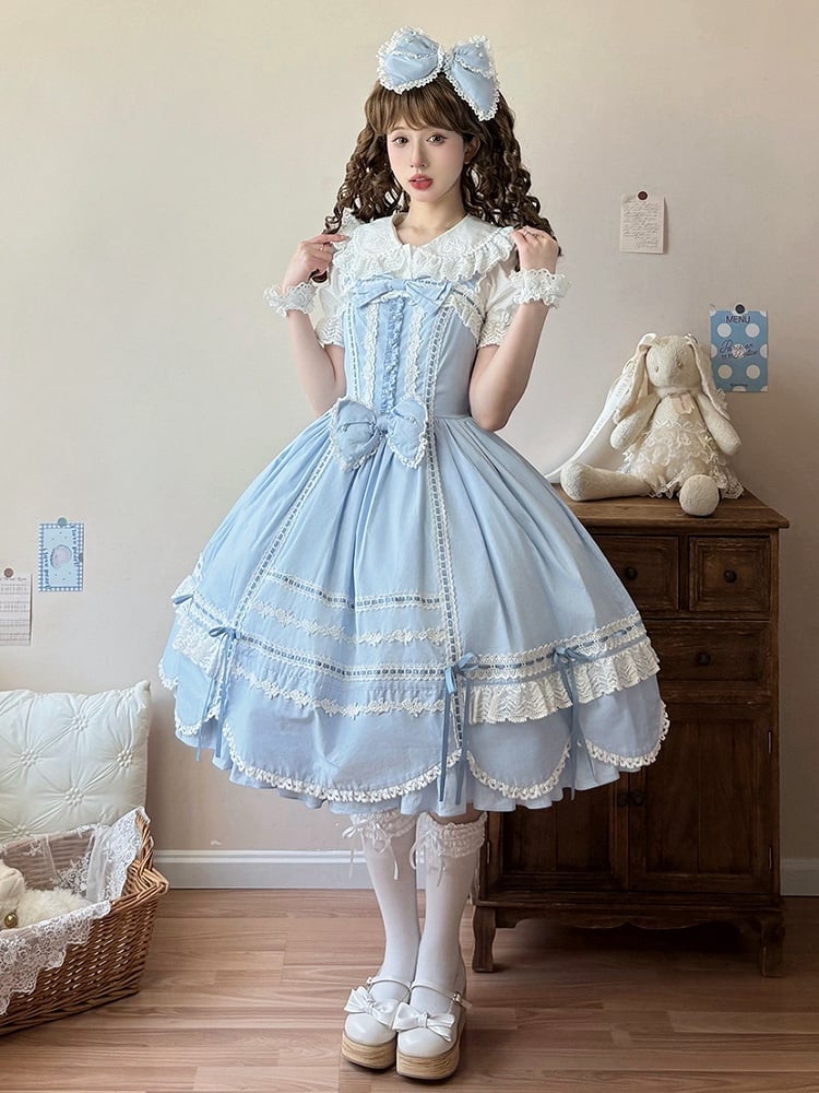 青と白のオールドスクールロリータファッションドレス 蝶結びディテール JSK セット通常価格 $71.49から通常価格 $71.49から セール価格単価 / あたり