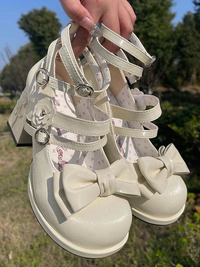● Bow at Top / Buckle Ankle Strap / Buckle Straps / High Block Heel