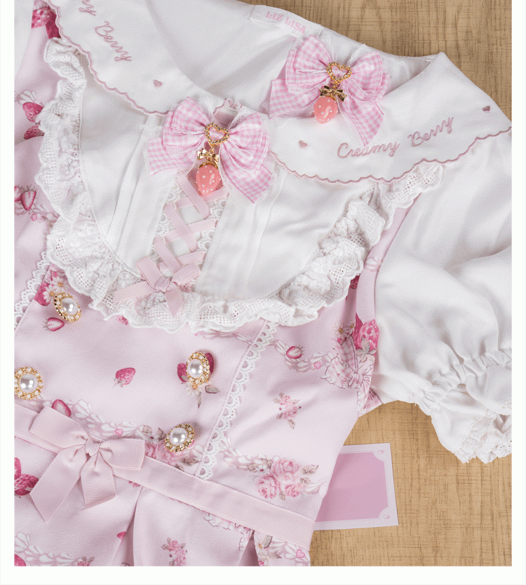 ピンクと白のオールドスクールロリータファッションドレス、蝶結びディテール、ロリータJSKセット
