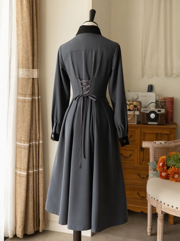 ロリータ冬秋ケープとワンピースエレガントなクラシックワンピースデザイングレーダーク