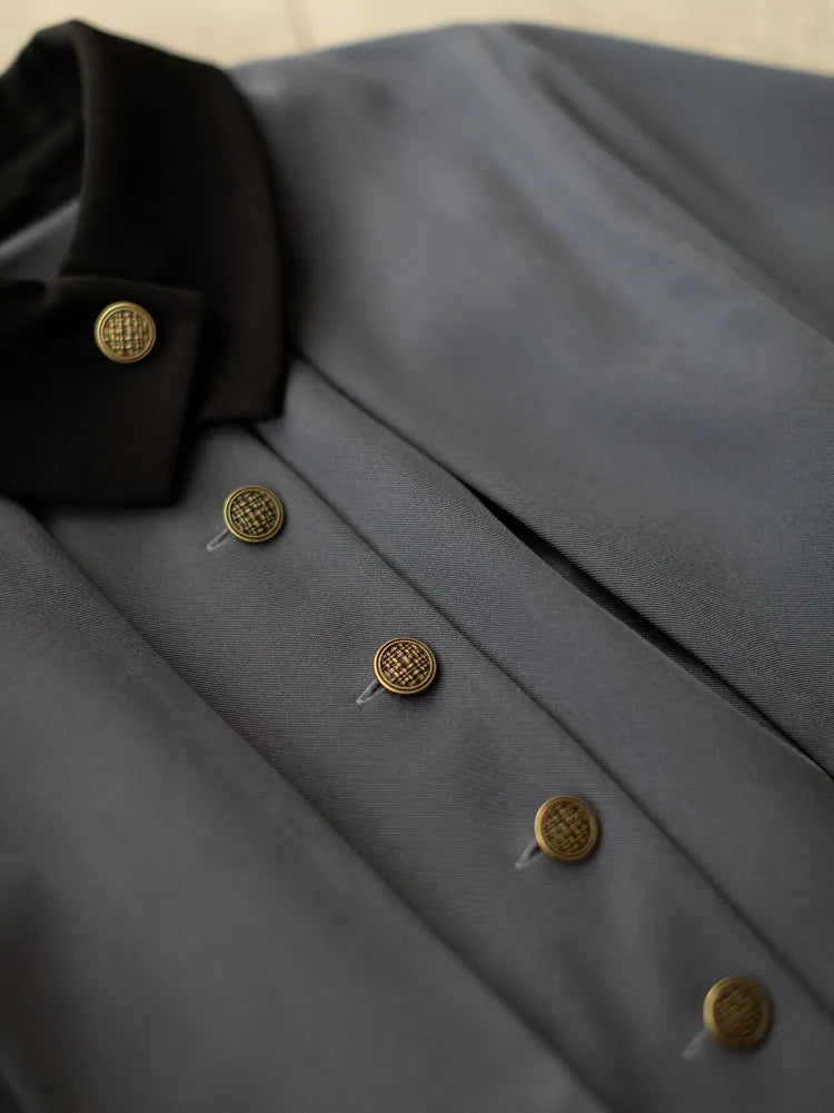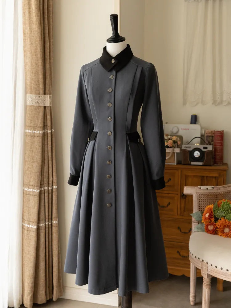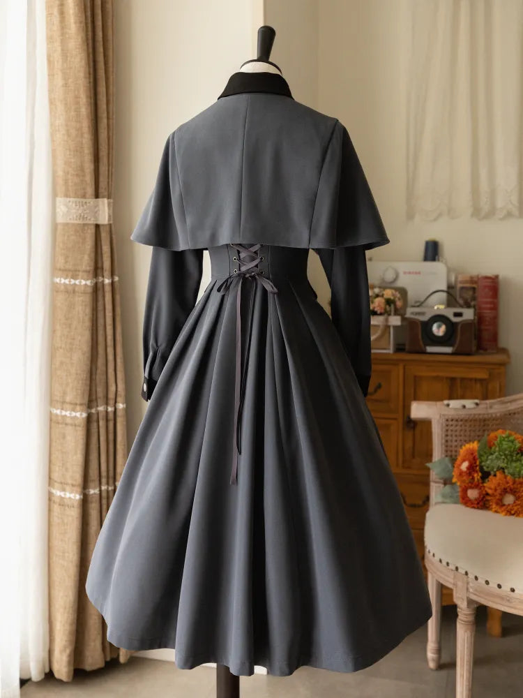ダークグレーのケープデザインの秋冬ドレスエレガントクラシックロリータワンピース