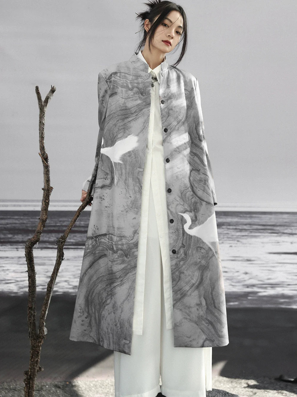 マーブル模様のロングコート「マーブル チャイナモード」で、暖かくキュートな装いを。個性的なマーブル模様が目を惹く、注目の的になること間違いなし。上質な素材を使用し、一年を通して暖かくスタイリッシュに着こなせます。ファッションに敏感な方にぴったりです。