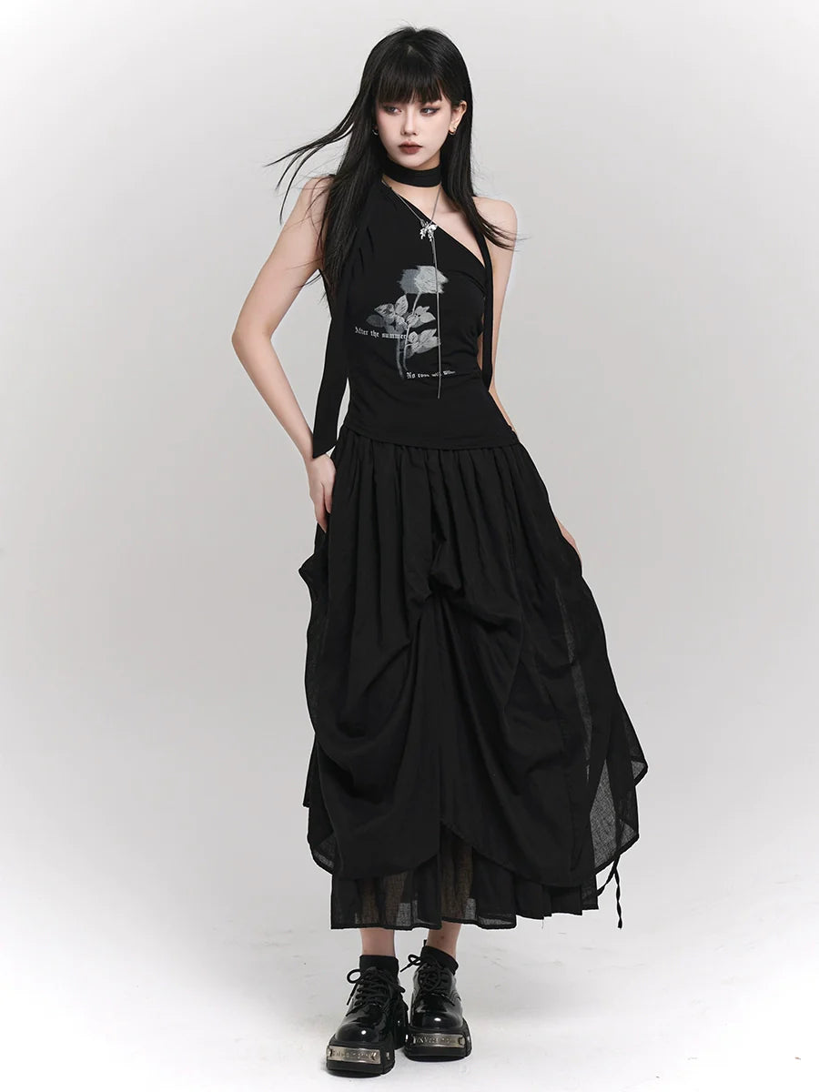 ロングスカート サマー ブラック ダークで、夏の準備は万端。風通しの良い日にぴったりの、ゆったりとしたシルエットと程よい丈感が魅力のスカートは、季節を問わず愛らしさをキープ。ワードローブにぜひ加えたいキュートなアイテムです。