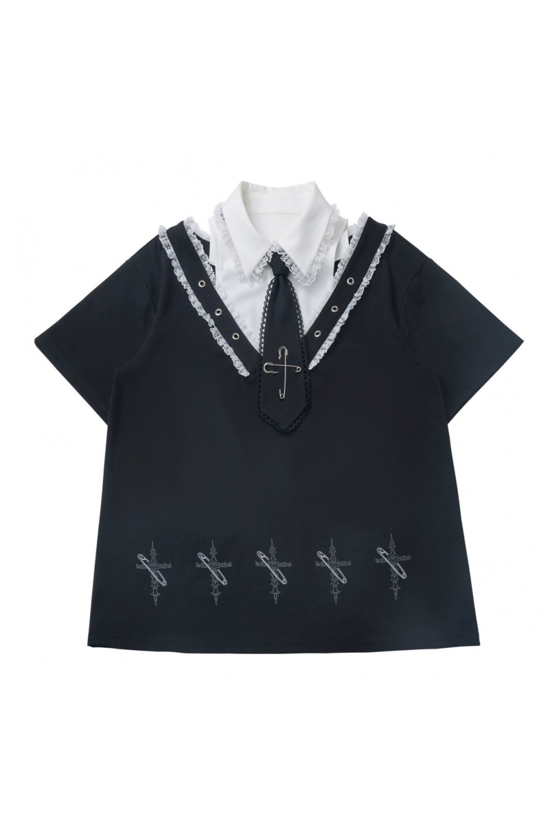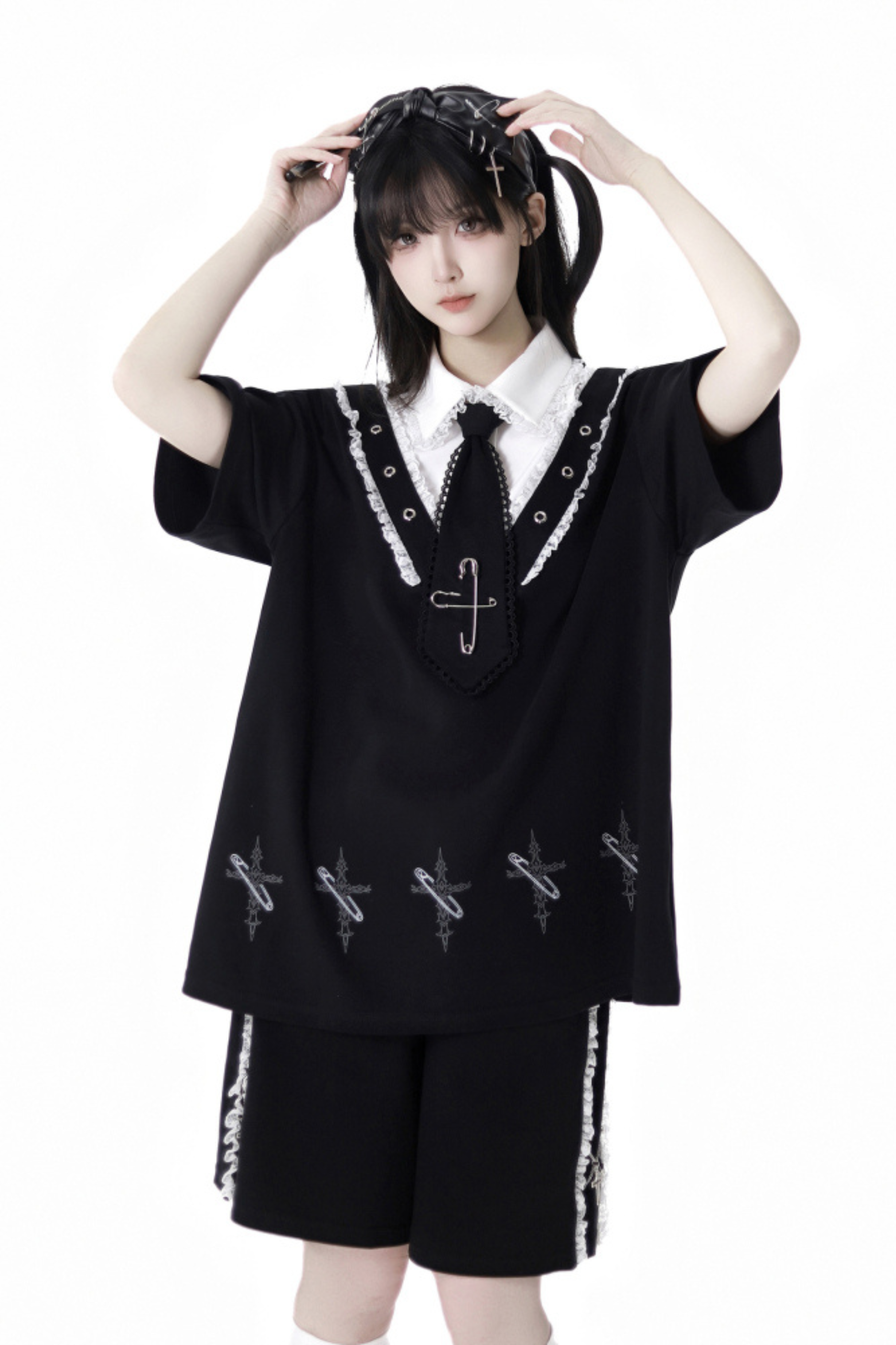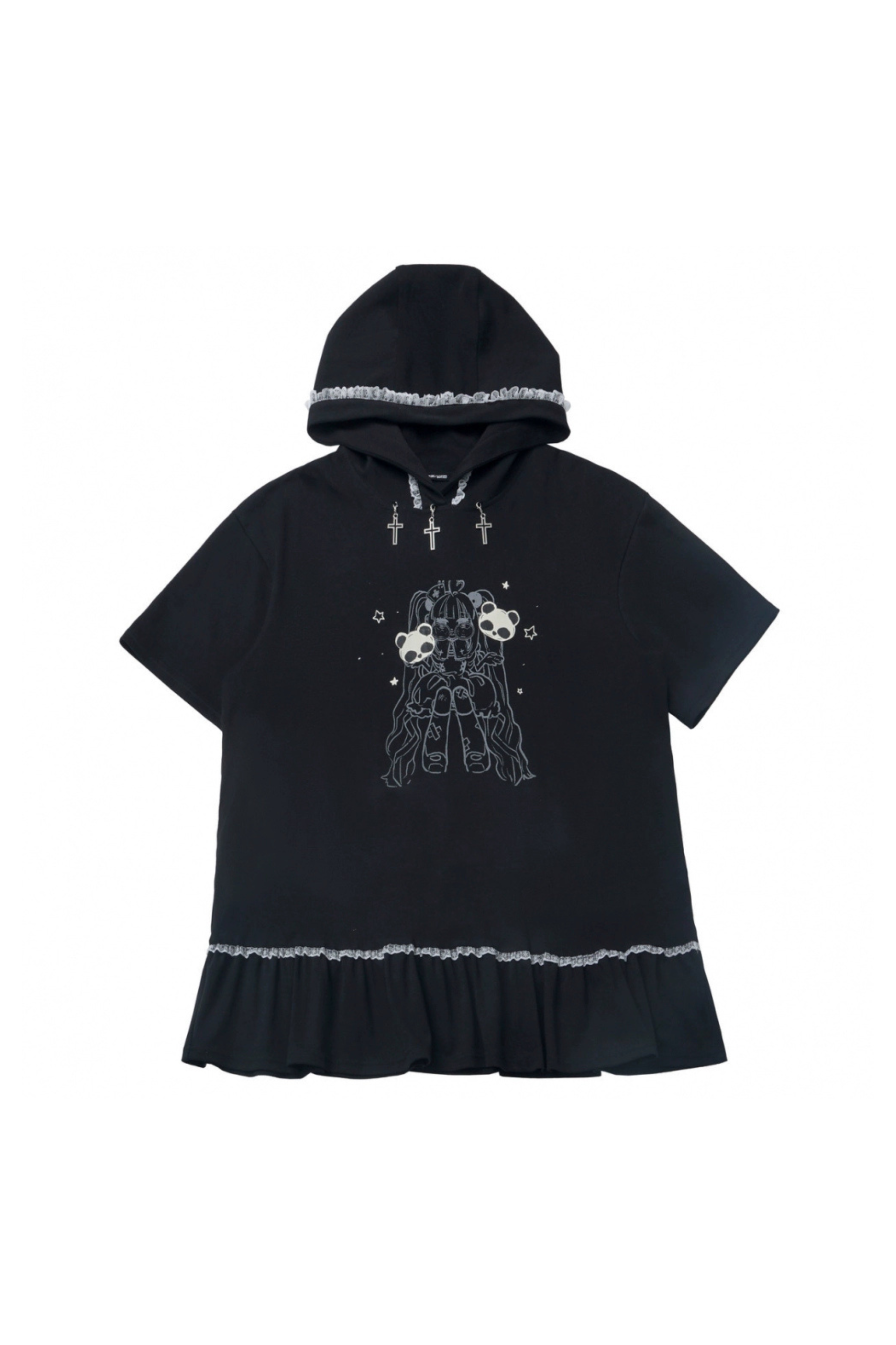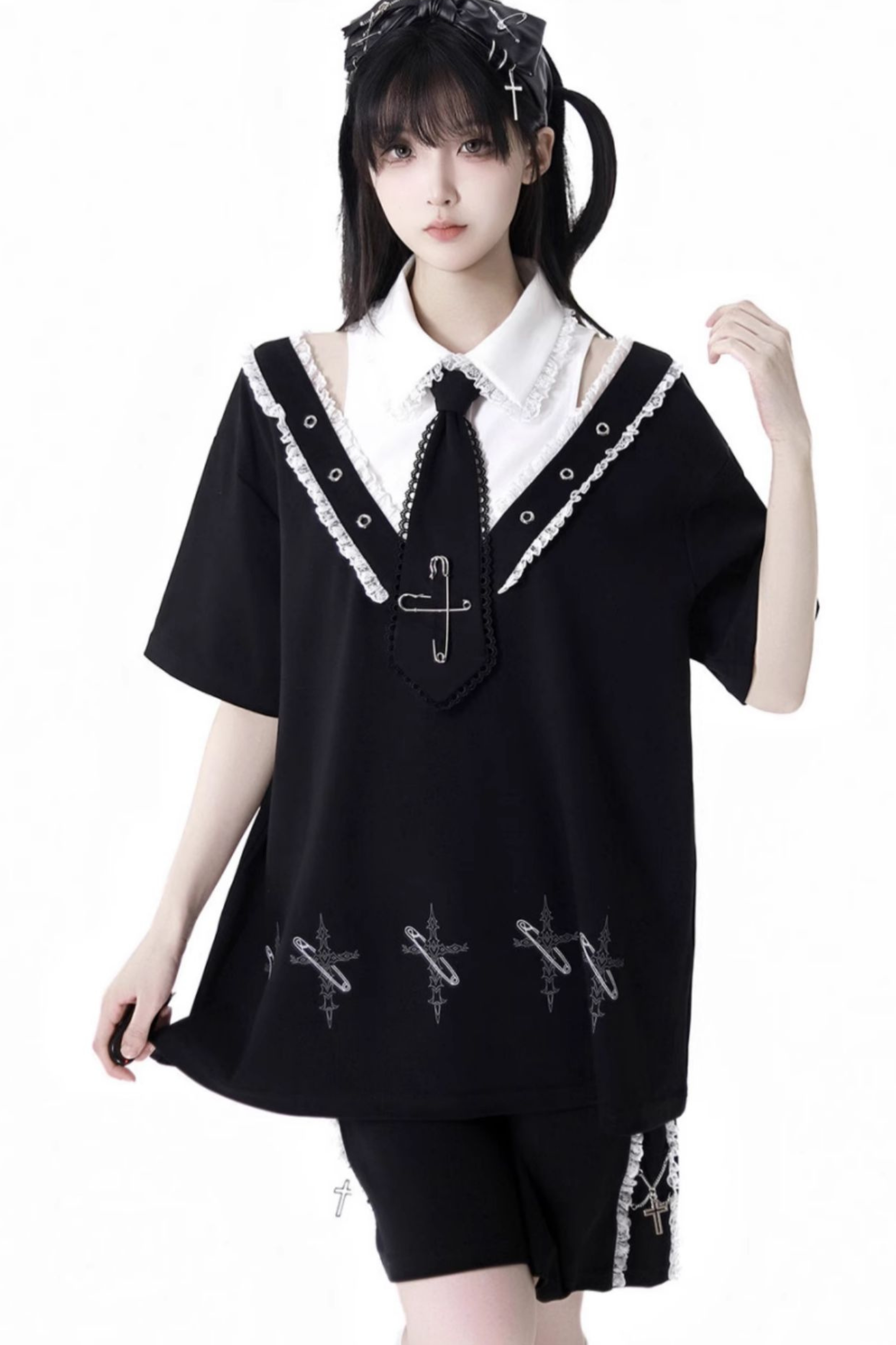 ❤フード付きフリルドレス + ネクタールーズトップ + ハーフパンツ + レッグウォーマー❤