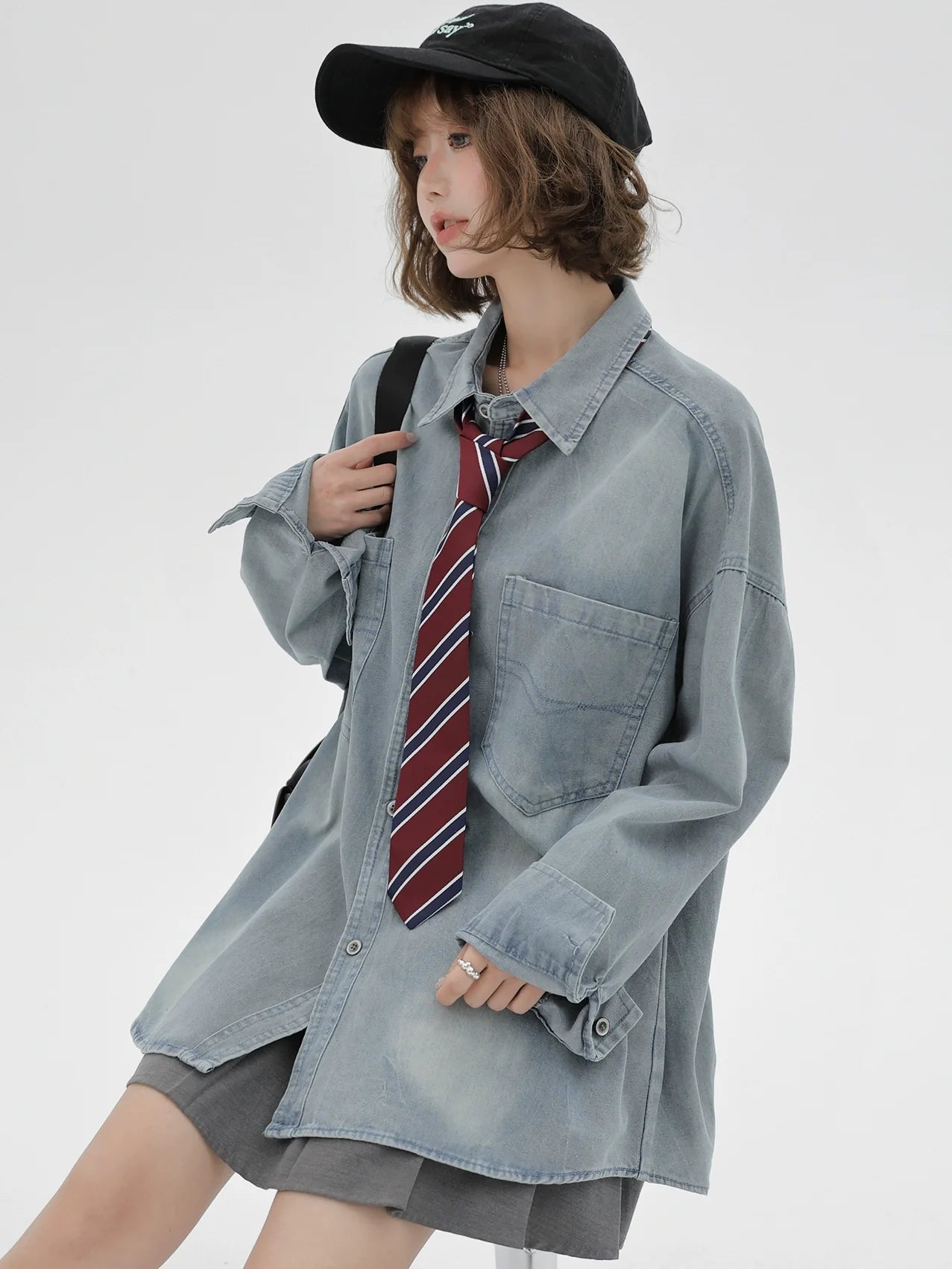 ルーズタイ デニム レトロジャケット + シャツ アメリカンで、スタイリッシュに快適に。上質なデニムを使用したこのジャケットは、個性的なルーズタイのデザインがキュートなアクセント。どんな装いにもトレンド感とレトロな雰囲気をプラスしてくれます。