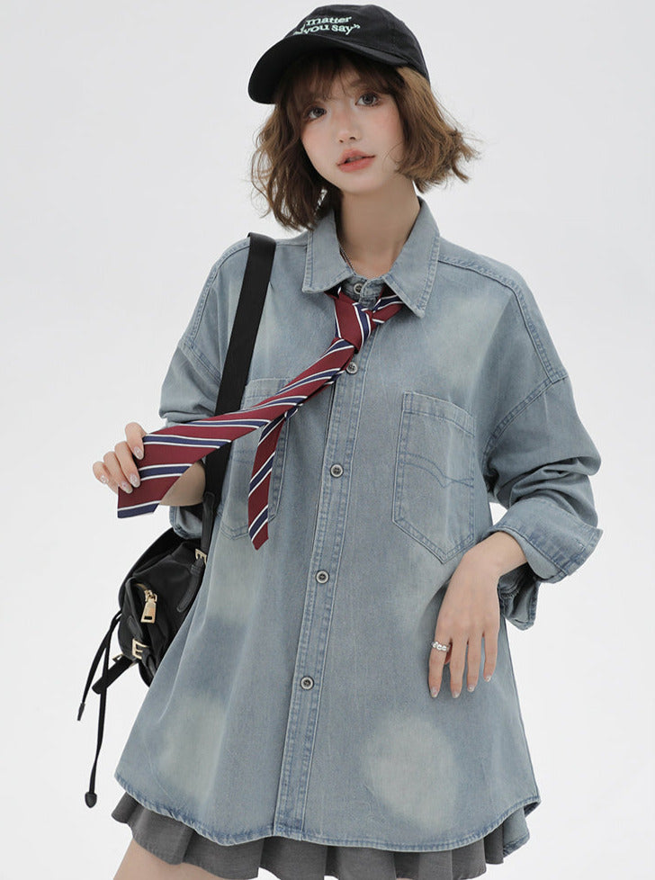 ルーズタイデニムレトロジャケット+シャツアメリカン