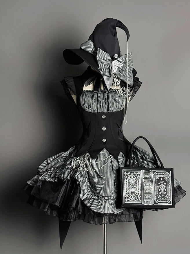 黒と白のオールドスクールロリータファッションドレス蝶結びロリータJSKセット