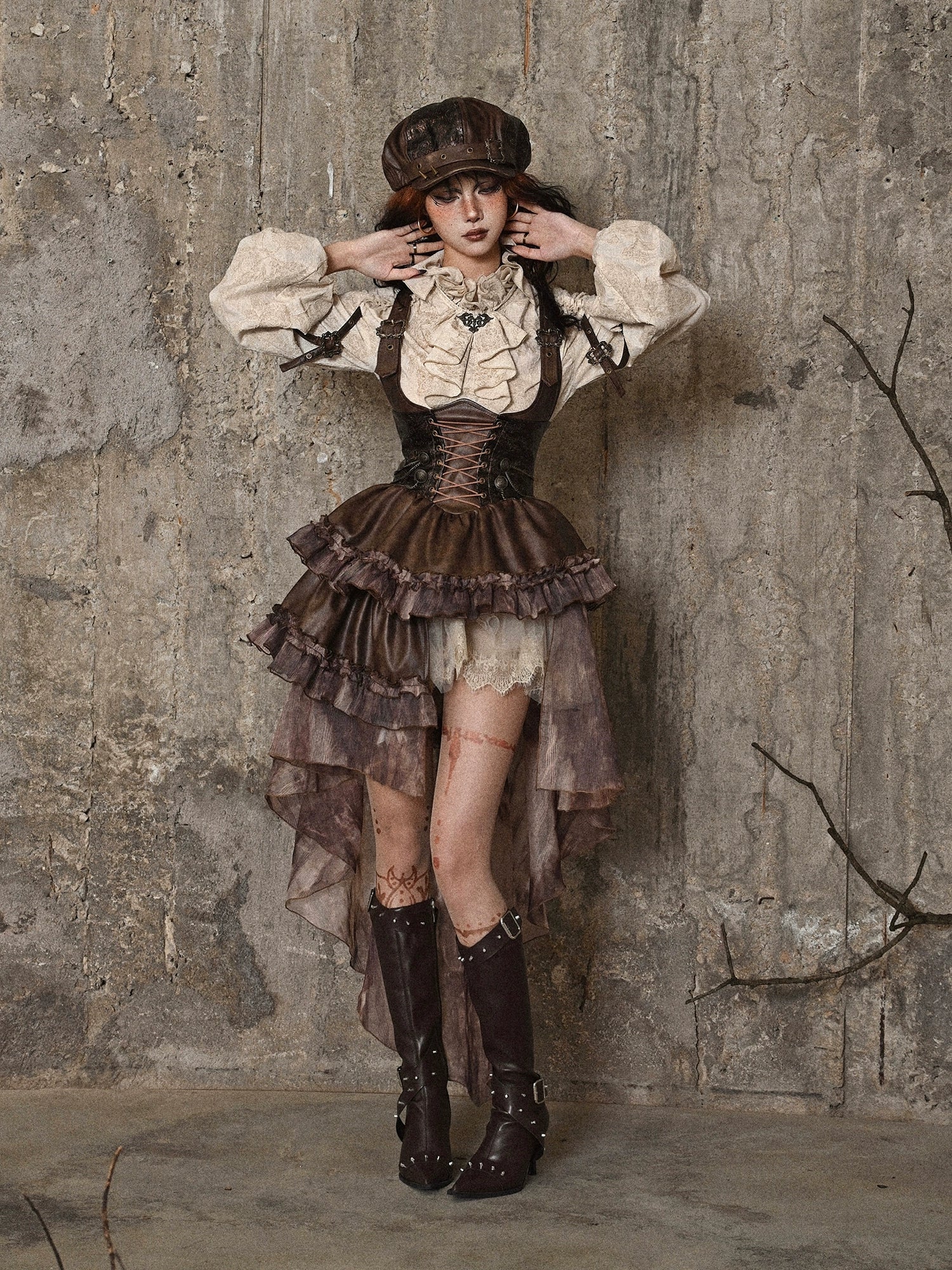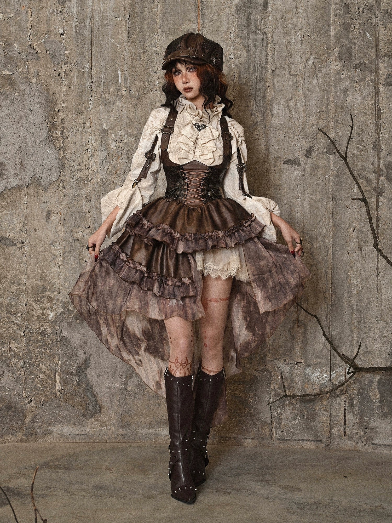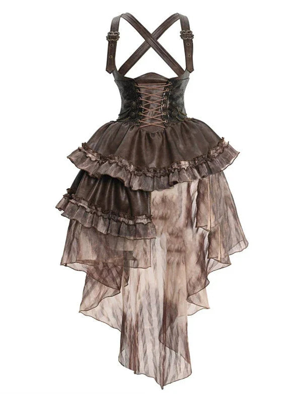 マイラードチェストPUスカートアシンメトリースチームパンクストラップサポート