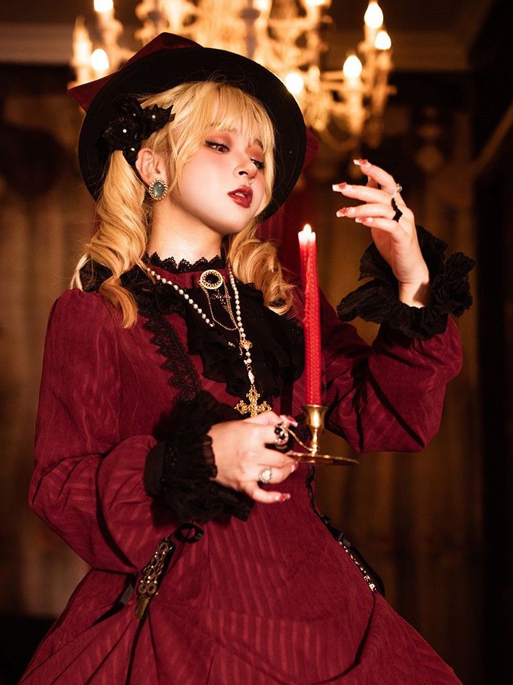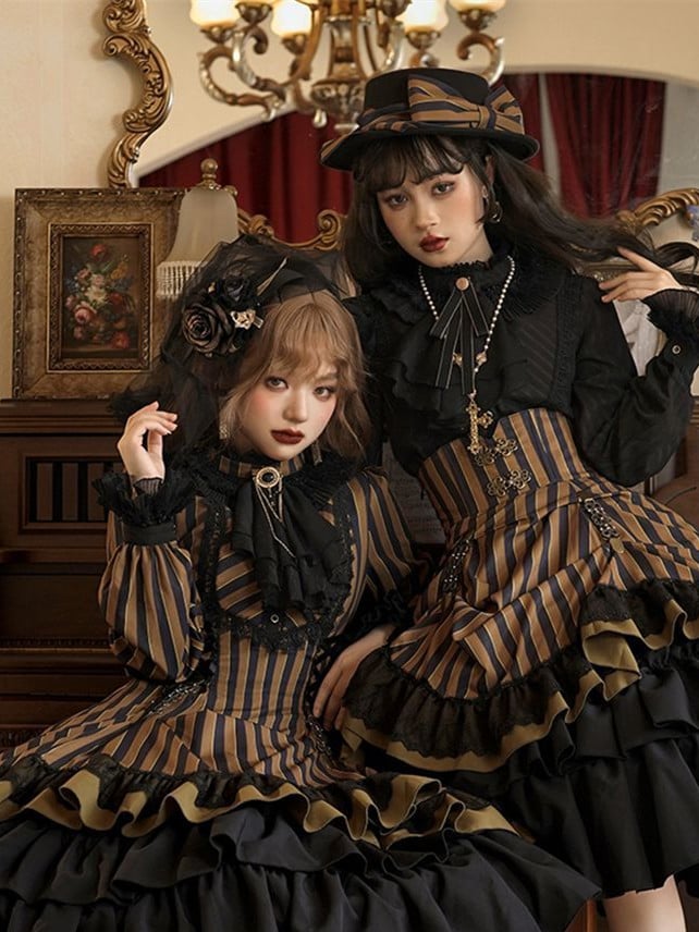 黒と白のオールドスクールロリータファッションドレス蝶結びロリータJSKセット