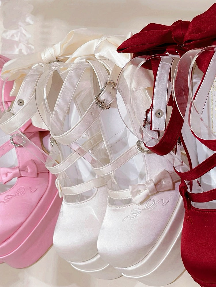 ホワイトの蝶結びエレガントクラシックロリータプラットフォームハイヒールメリージェーン