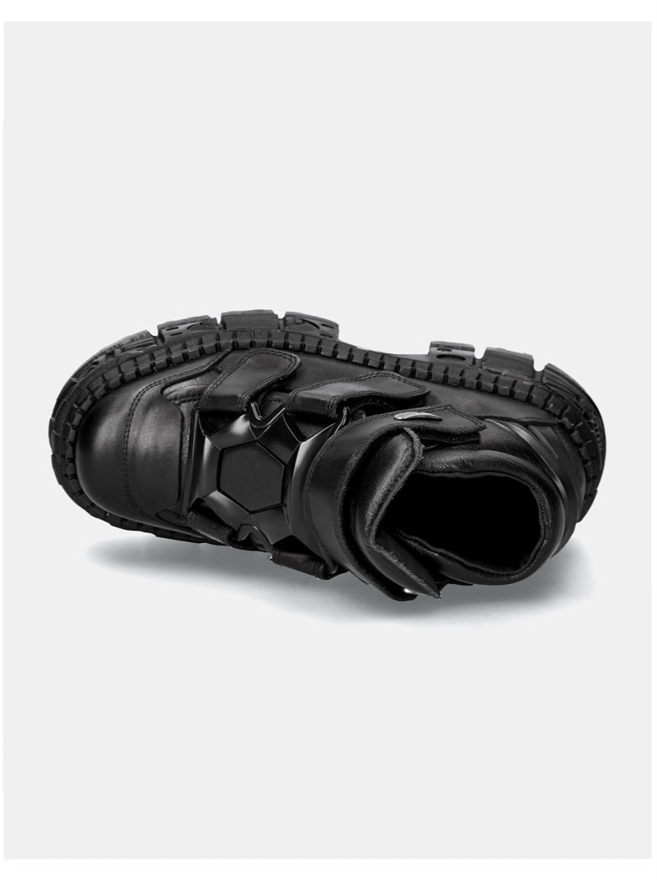 メタルレザーハイプラットフォームプレーン、パンクチェーンシューズ、ダークスタイルトップ