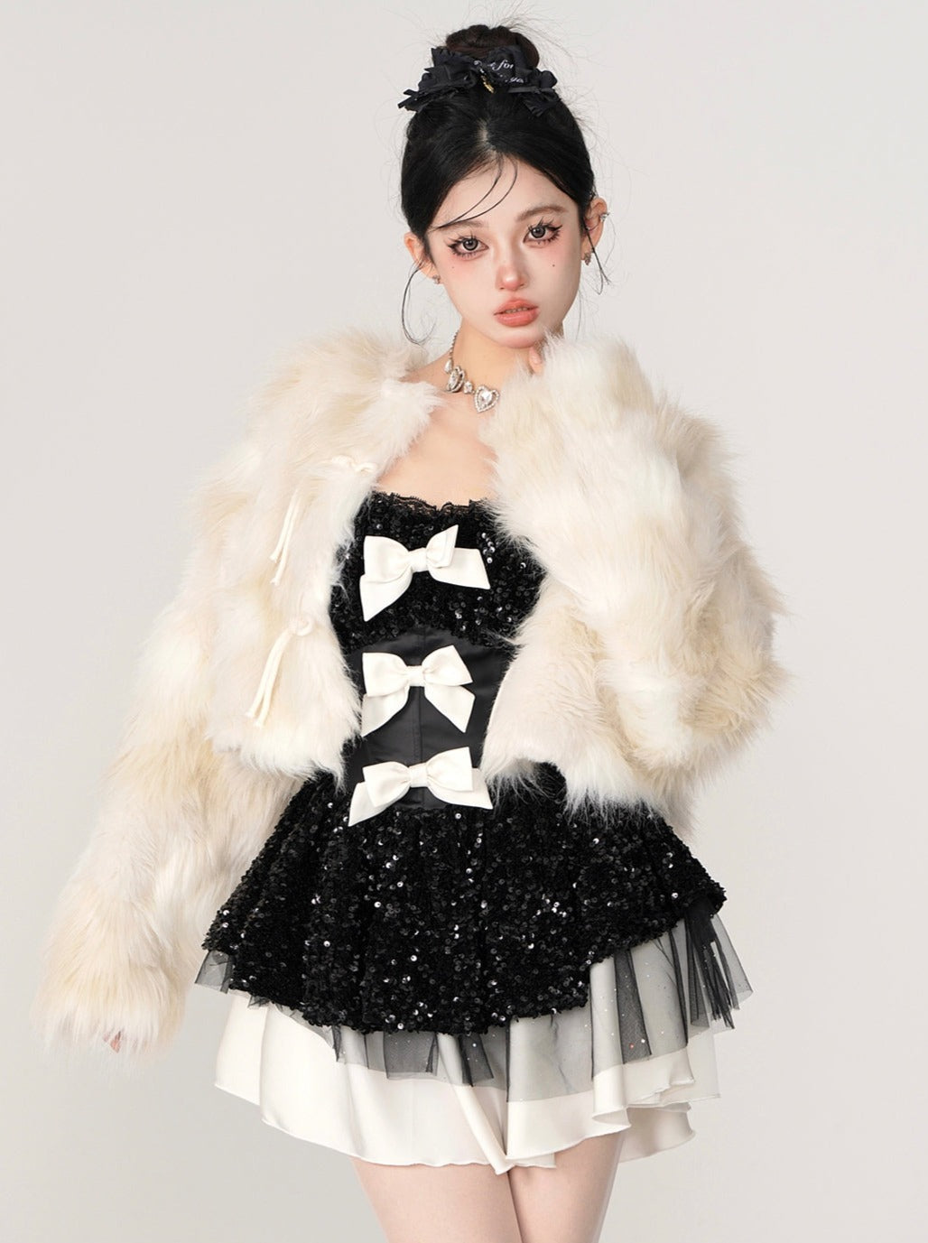 この愛らしいミルクボリュームファーショートコートは、この冬の暖かさとスタイリッシュさを兼ね備えた一枚です。上質な素材を使用し、柔らかく快適な着心地を実現。フェイクファーがラグジュアリーな雰囲気を添え、ショート丈がトレンド感をプラス。この素敵なコートで、暖かくキュートな装いを演出しましょう。
