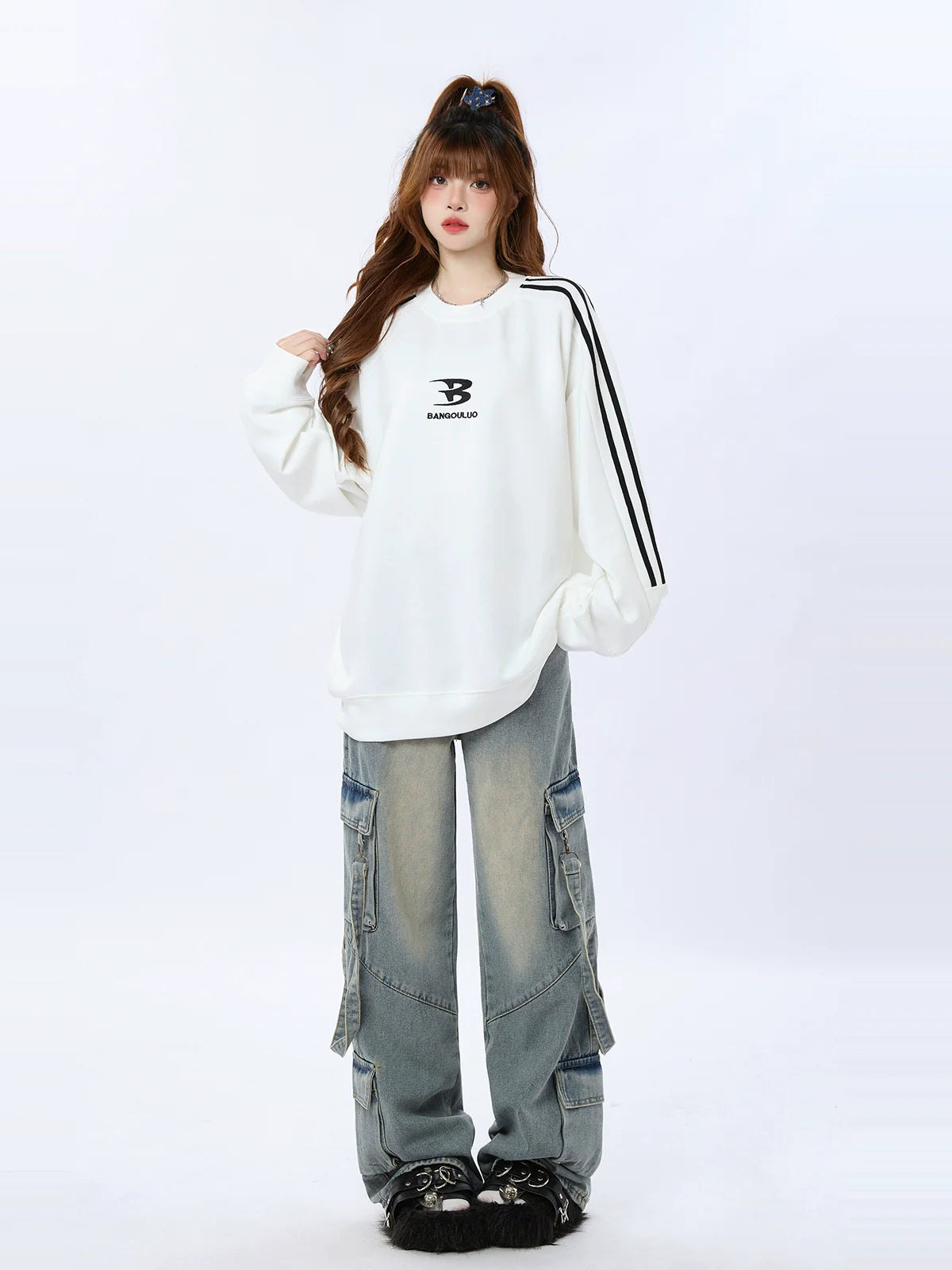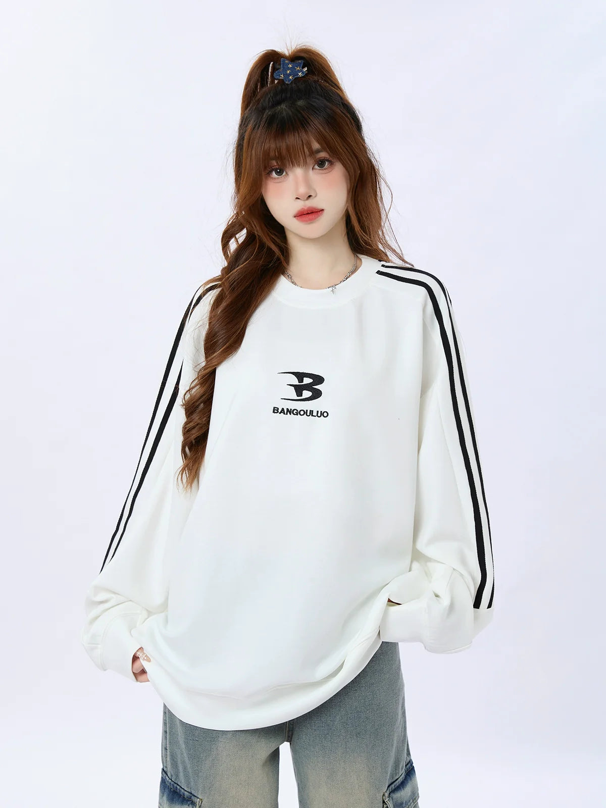 アメリカンレターデザインが特徴のモードストリート風ルーズスウェットシャツは、個性的なスタイルを演出するのに最適です。ゆったりとしたフィット感と心地よい素材で、心地よくキュートな着こなしを。
