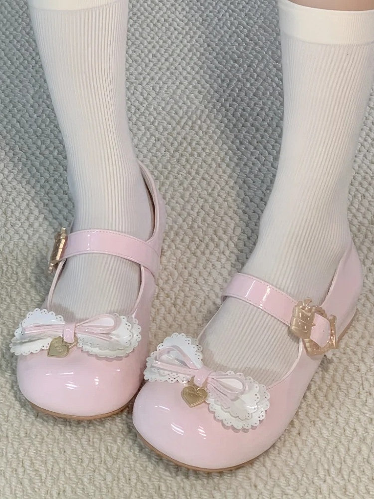Multi-layer Cake Bows Light Pink Buckle Low Heels with Sweet