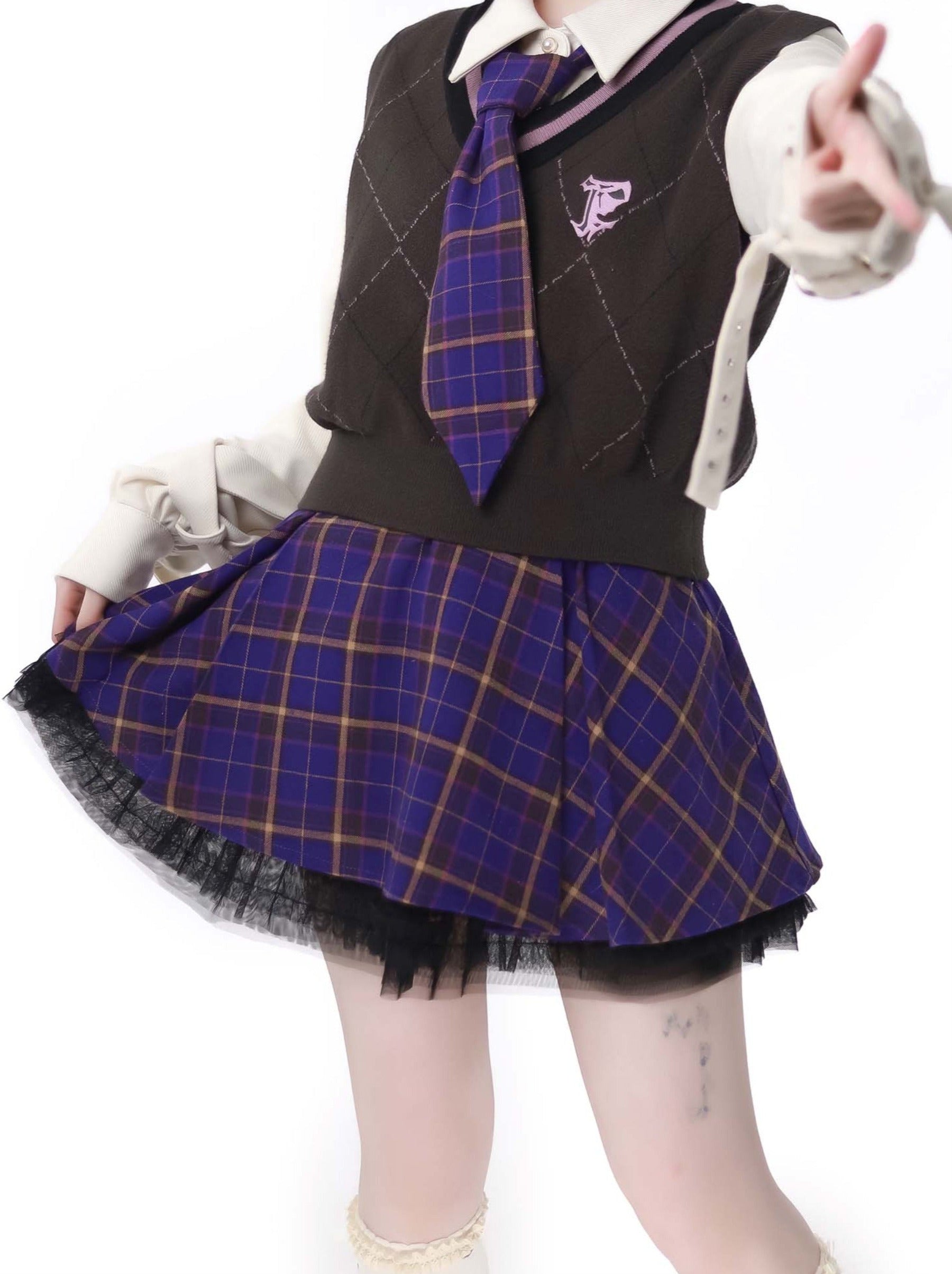 マルチポケット タロ パープルジャケット ニットベスト スカートスーツ