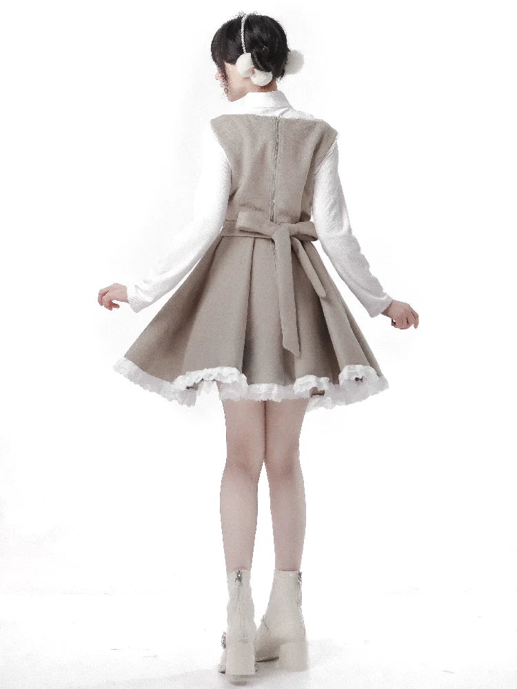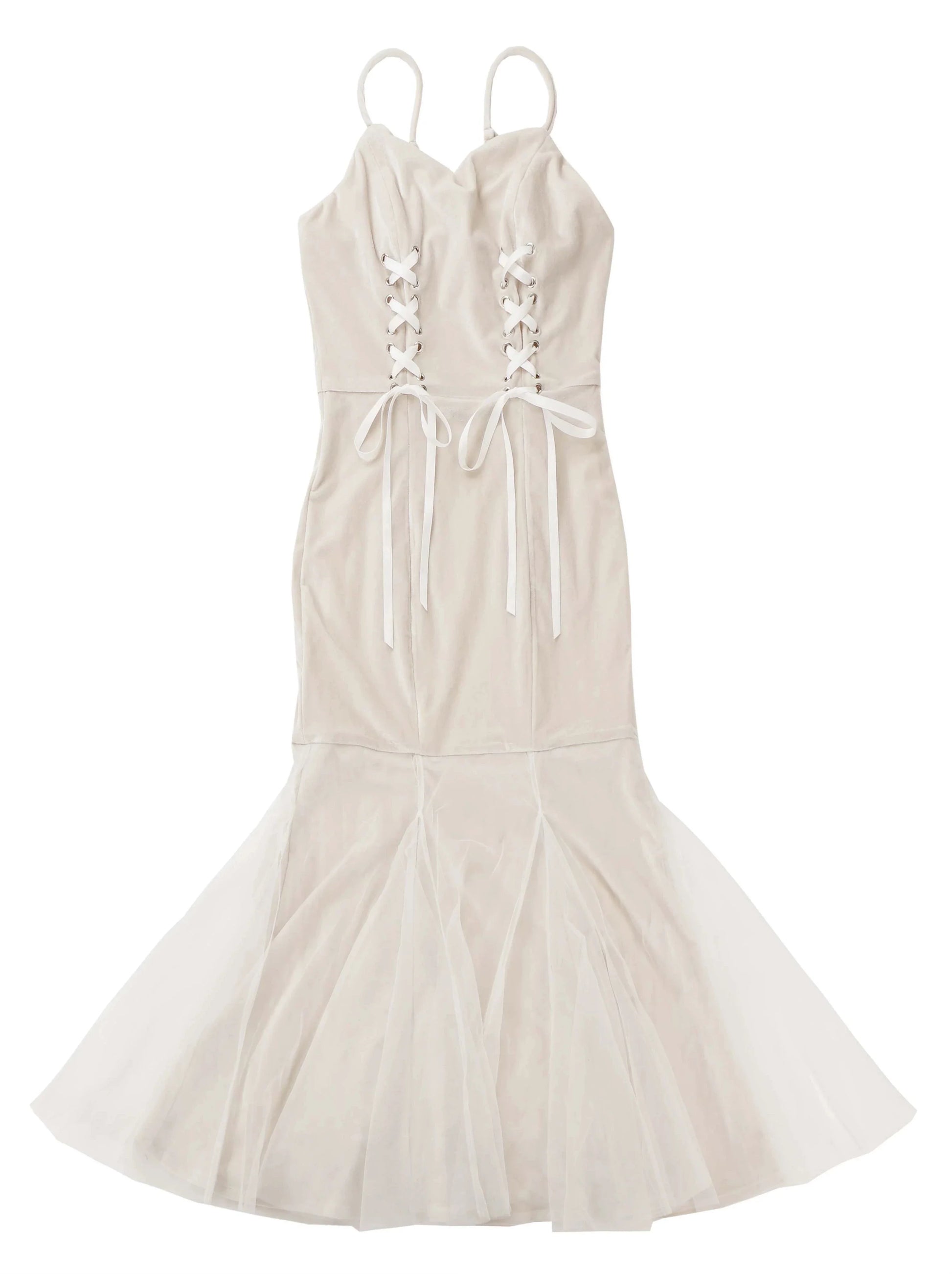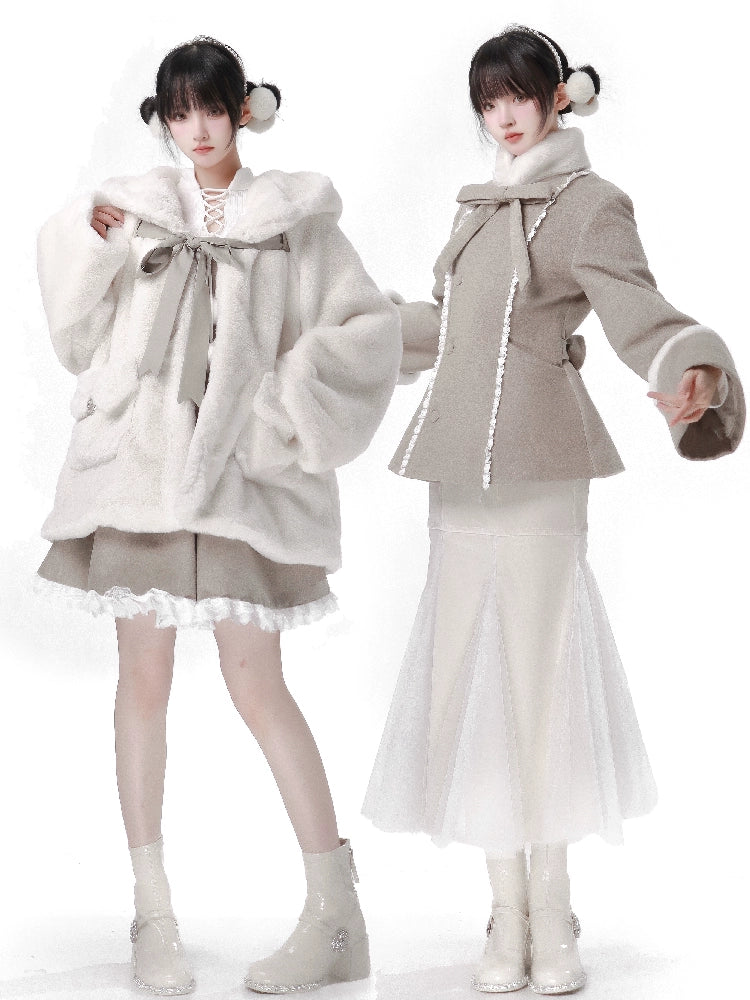 ムナポエム エコファーコート フィッシュテールレスストラップ レースジャケット ウールスーツ