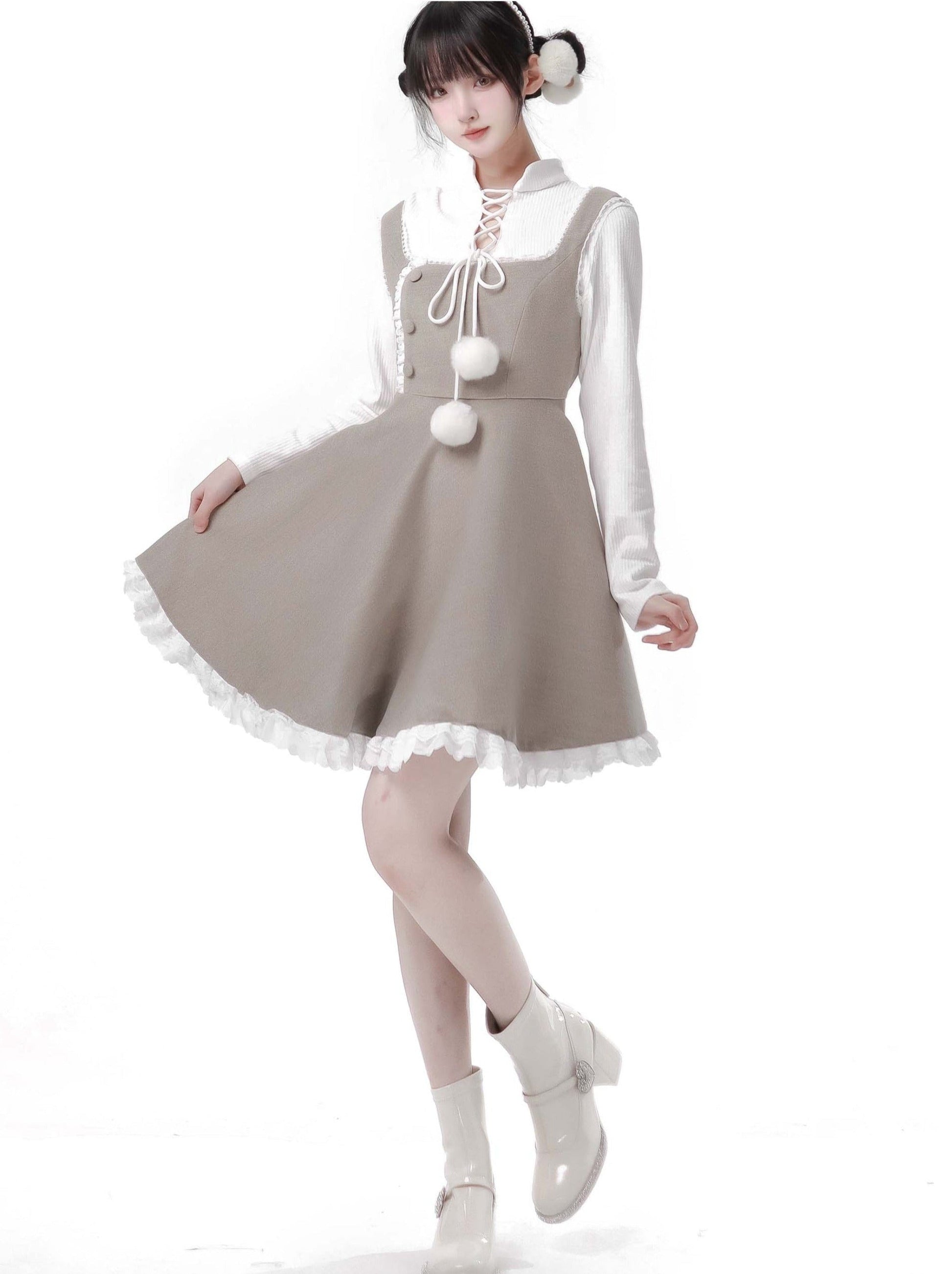 青と白のオールドスクールロリータファッションドレス 蝶結びディテール JSK セット