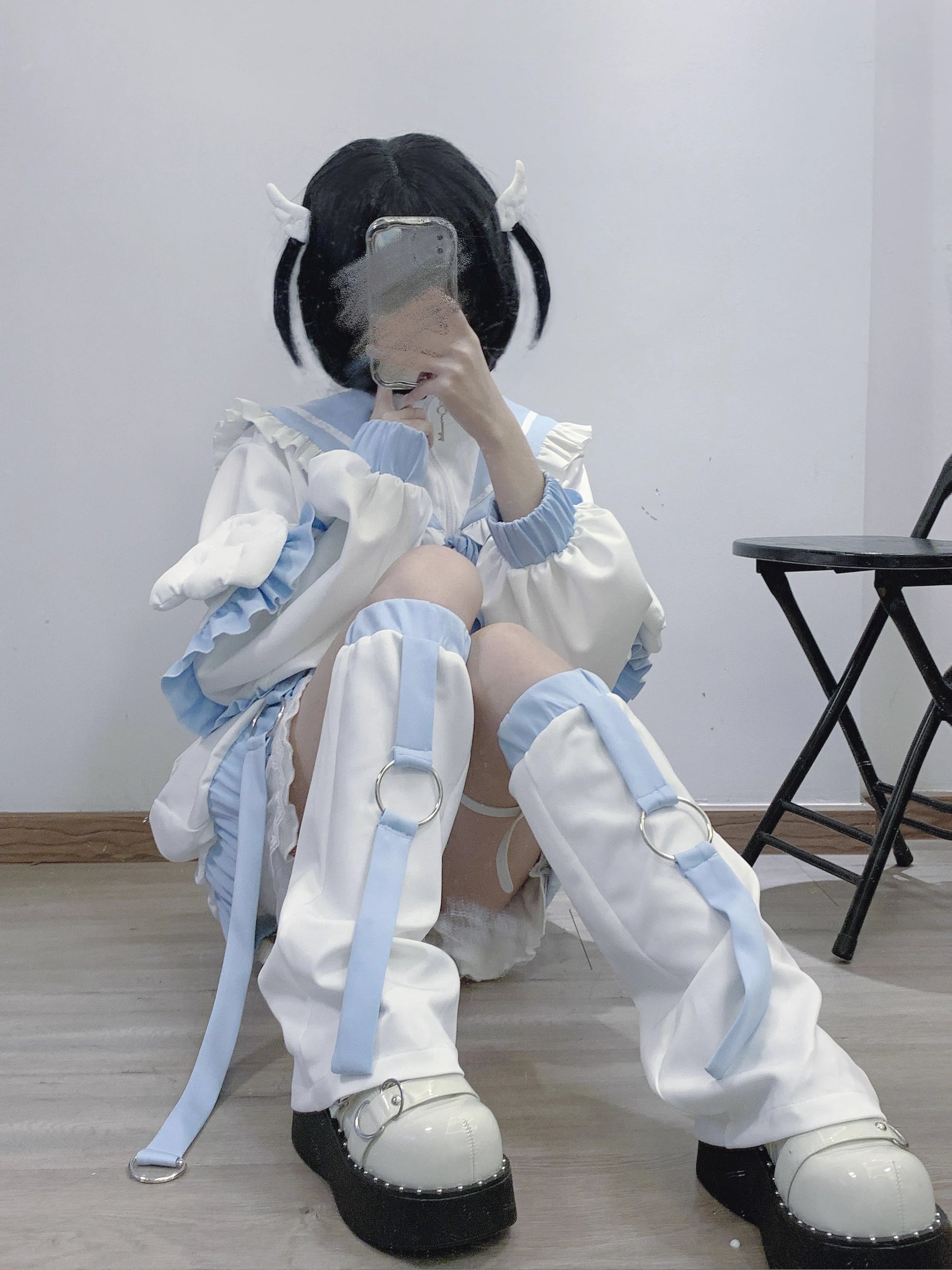 青と白のオールドスクールロリータファッションドレス 蝶結びディテール JSK セット