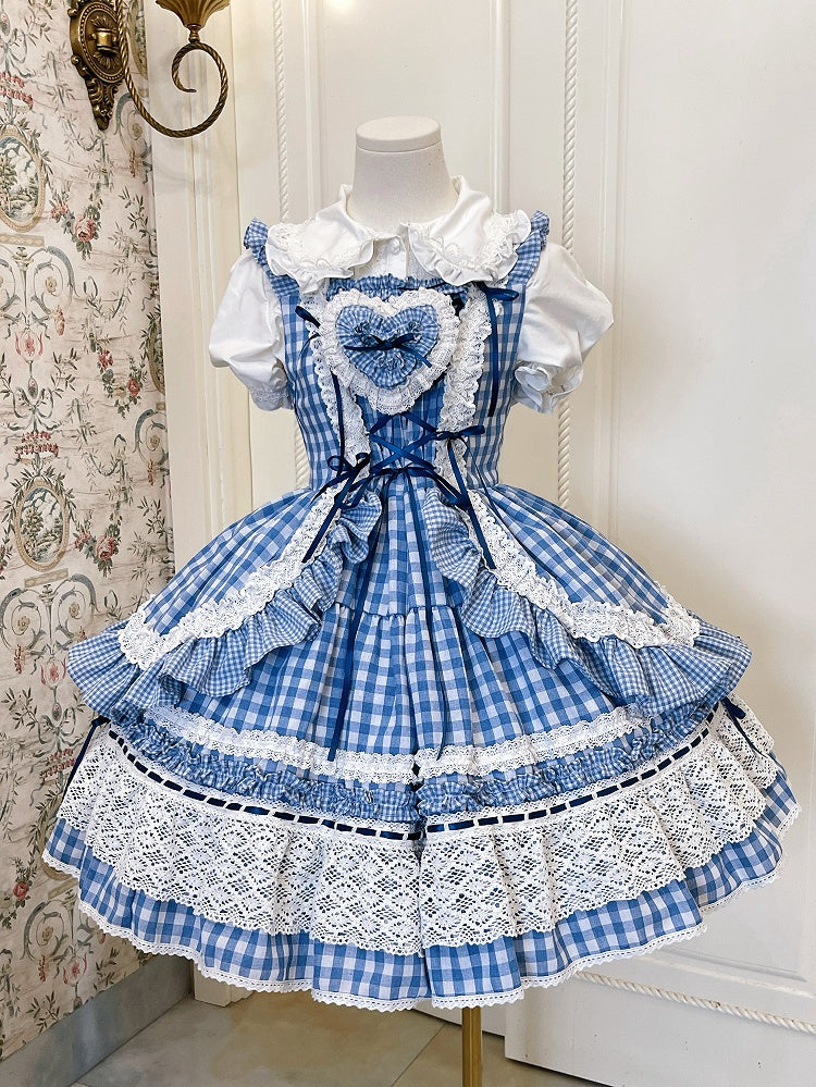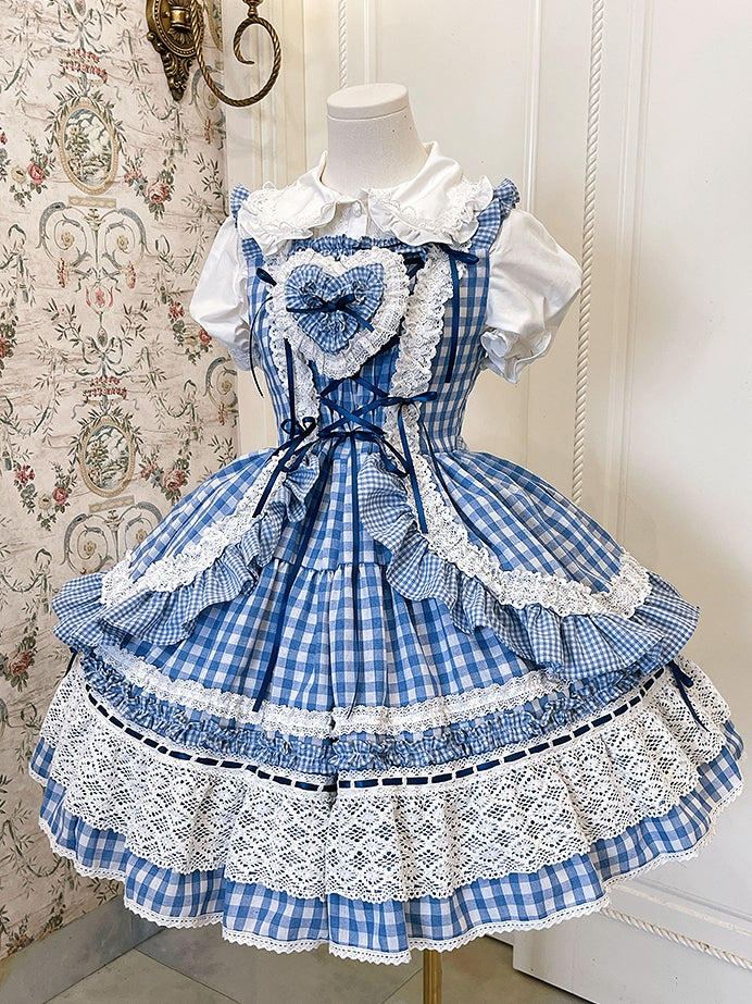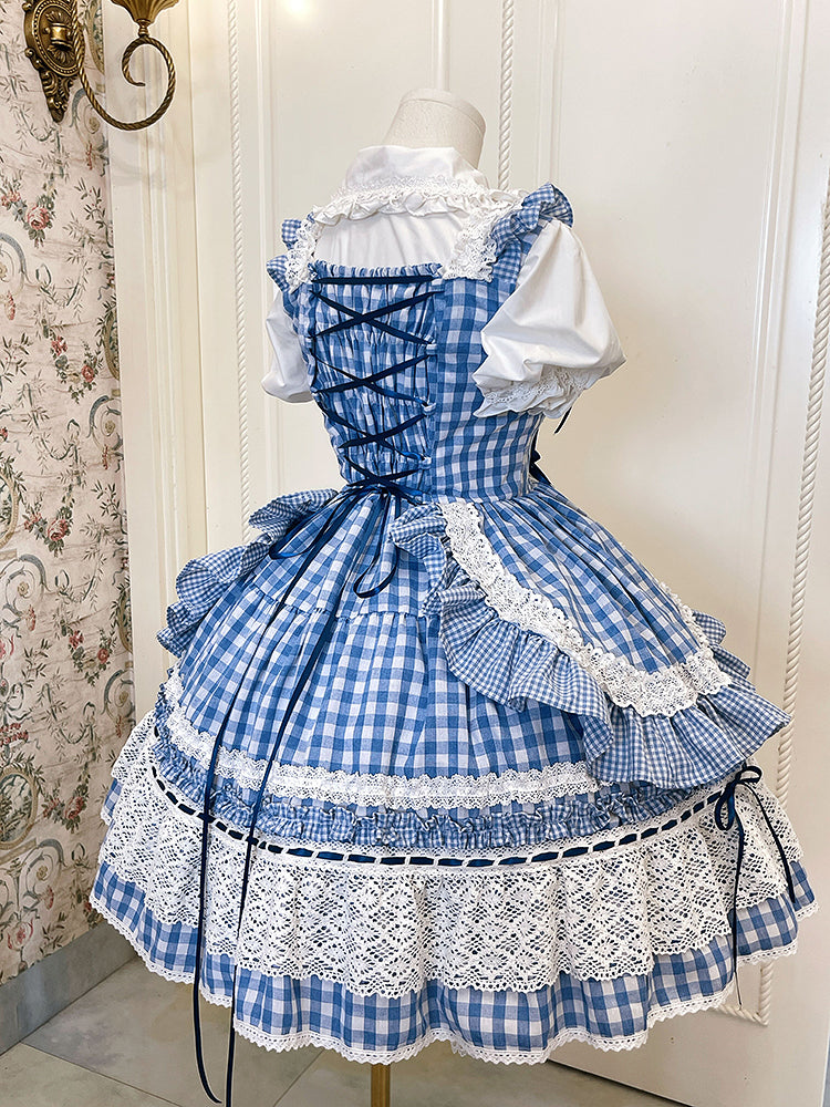 青と白のギンガムドレス、オールドスクールロリータジャンパースカート