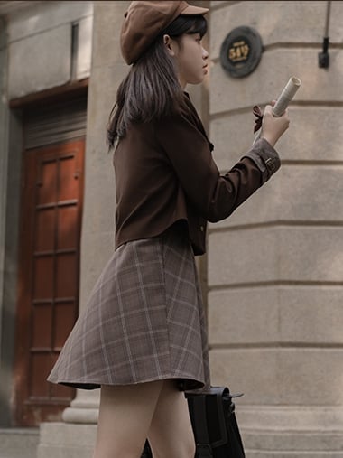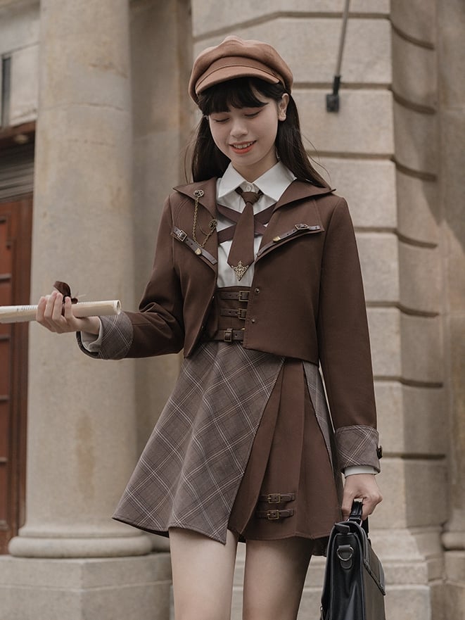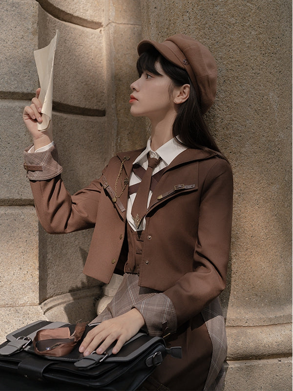リトル・ディテクティブのブラウンプレッピーブレザー、マイラール・リアクション・アウトフィット
